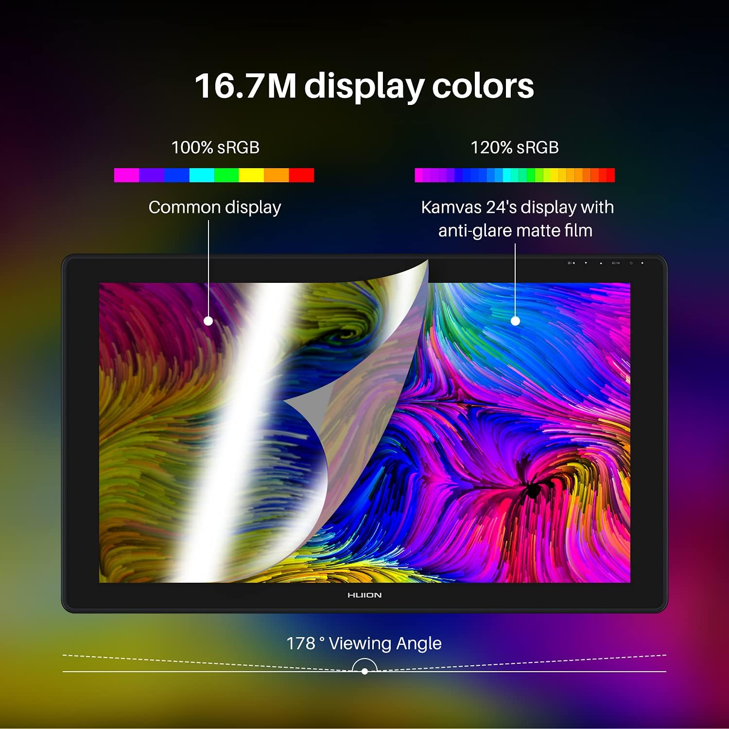 - 2.5K Resolution for Clear Visuals: As the Value-priced large format display of Huion, Kamvas 24 digital drawing tablet equips the 23.8-inch 2.5K screen with a 178°wide viewing angle and 120%s RGB color gamut that makes your creative session comfortable and productive. With scratch-resistant anti-glare film, no air gap will bring you a lifelike drawing experience as drawing on paper.