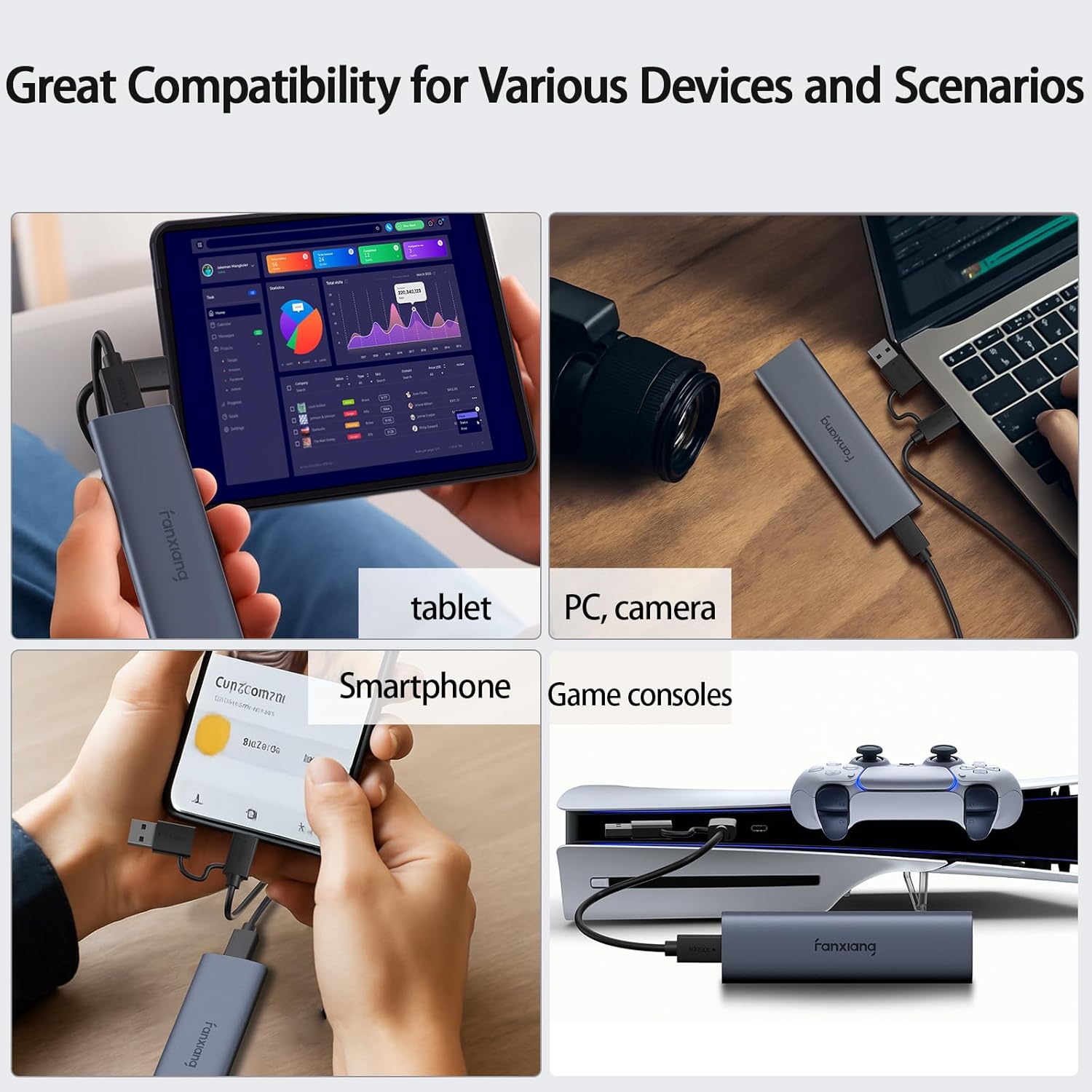 - Broad Compatibility via USB-C Interface : Works seamlessly with Mac, Windows, Android, and iOS (USB-C). This solid state external hard drive connects to laptops, desktops, tablets, and phones — perfect for transferring, editing, or backing up large files across devices
