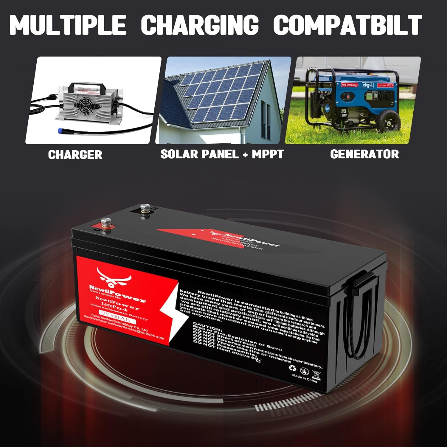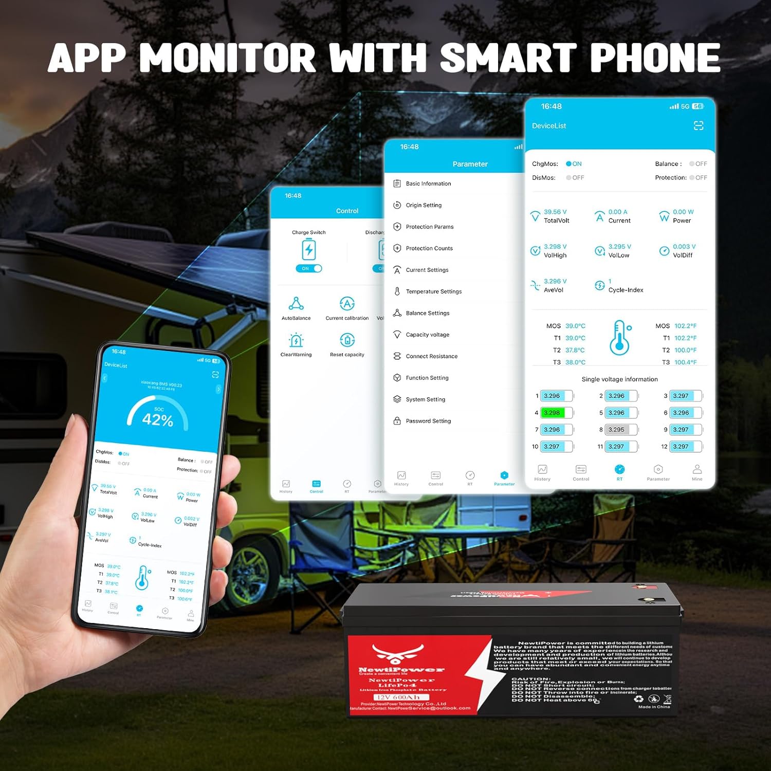 - 【Supporting 6S or 6P expansion】:NewtiPower 12V lithium battery 600Ah can be connected in parallel or series (up to 6S6P) to achieve larger capacity (up to 3600Ah) and higher voltage (24V, 36V, 48V, 60V, 72V), making it the best choice for many applications such as solar systems, RVs, travel trailers, caravans, solar energy, marine, home backup power, off grid, camping, sailing, etc. The ultra long battery life provides you with reliable power and enjoyable long-distance travel.