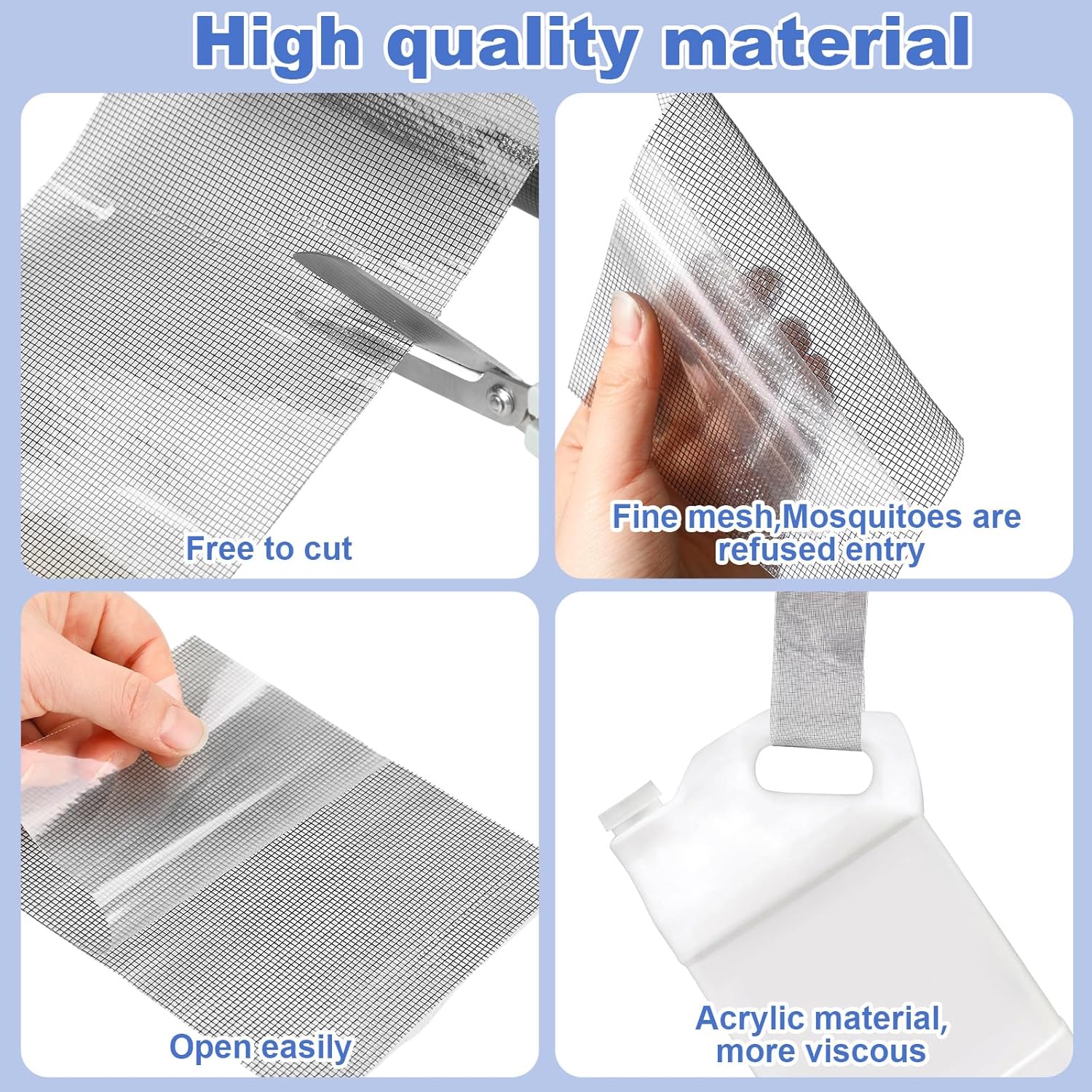 - Heavy Duty Tape: the window screen repair kit is strong, its adhesive can stick to any screen surface, and it is waterproof; The fine mesh design prevents mosquitoes from entering; Long enough to repair broken screens, no matter the hole is how bad