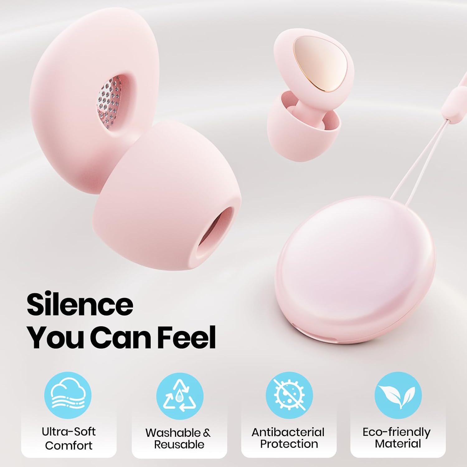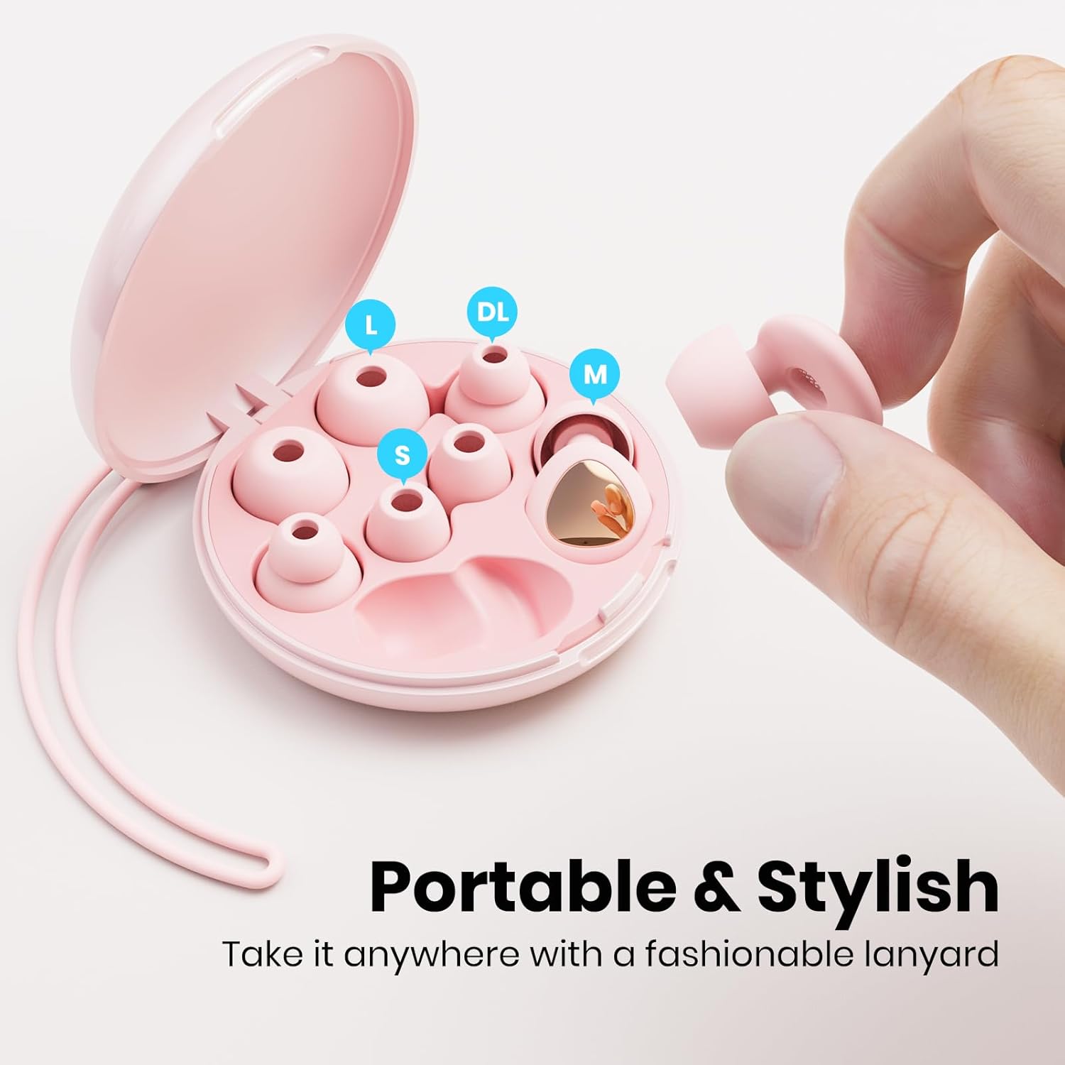 - [All-Day Comfort] With 4 sizes of ear tips (dual-layer, S, M, L), these ear plugs conform naturally to your ear shape for a secure, comfy fit. Made from ultra-soft silicone, they reduce pressure and stay in place—even when sleeping on your side or moving during the night.