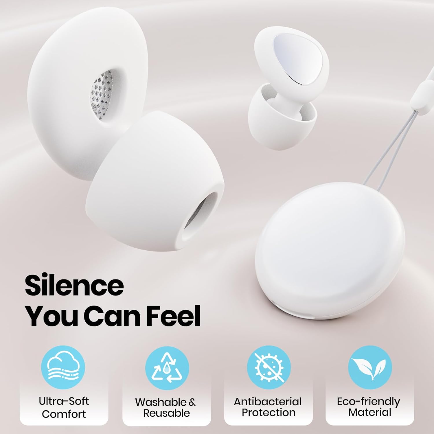 - [All-Day Comfort] With 4 sizes of ear tips (dual-layer, S, M, L), these ear plugs conform naturally to your ear shape for a secure, comfy fit. Made from ultra-soft silicone, they reduce pressure and stay in place—even when sleeping on your side or moving during the night.