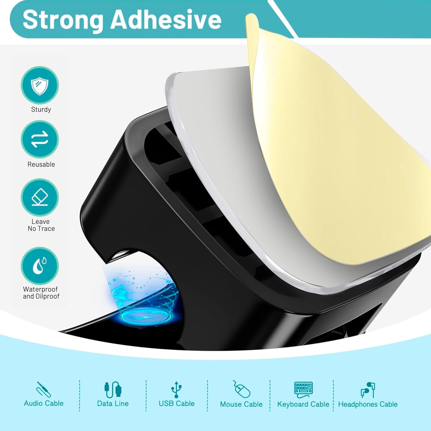 - The cable organizer features upgraded adhesive pads, ensuring a firm and damage-free grip on flat, clean, and smooth surfaces like tiles, steel, glass, and wood.