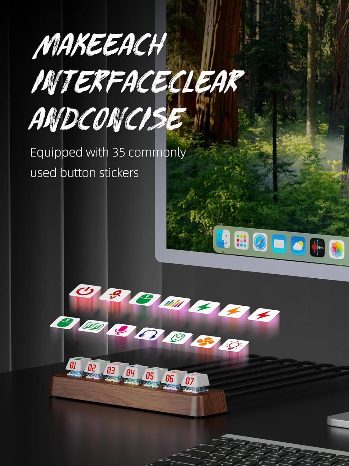 - 3. Hot swappable control switches: 7 switches independently controlling USB ports support DIY modification, compatible with mechanical keyboards similar Cherry MX Switch and keycaps (gift 35 commonly used peripheral icons to categorize USB ports).