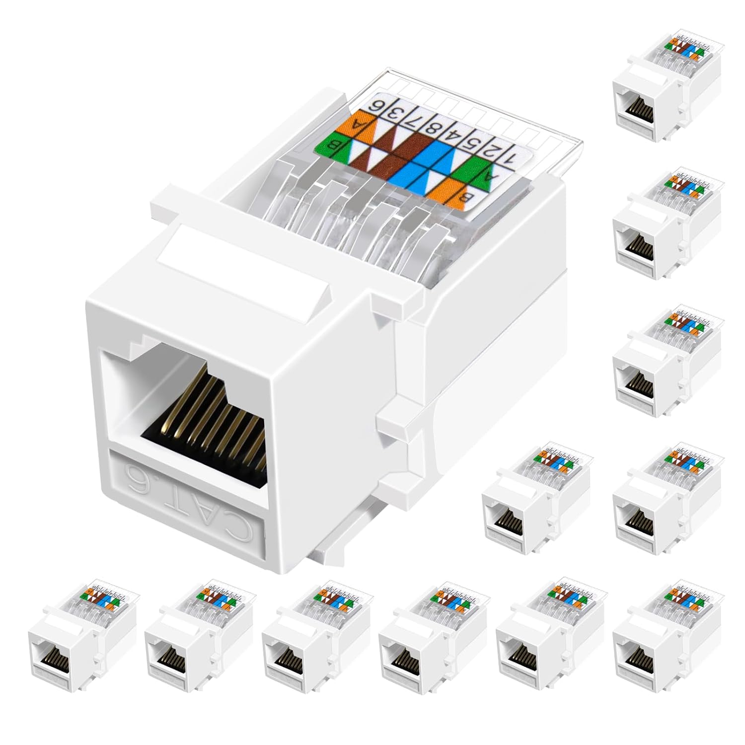 Cat6 RJ45 Keystone Jacks Toolless 12-Pack, Female RJ45 Connectors, Ethernet Keystone Jack No Punch-Down Tool Required Module Coupler (Not for Patch Panel),White