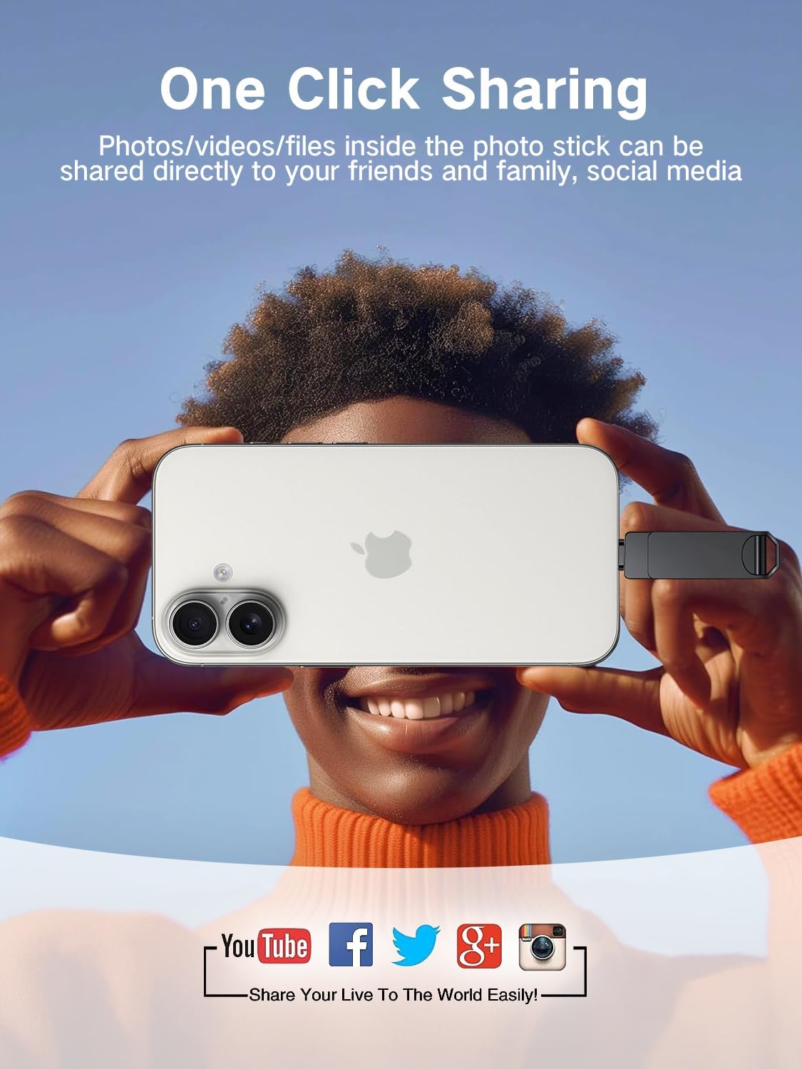 - 【Plug and Play, Expand iPhone and iPad Storage Instantly, No App Needed】Running out of space on your iPhone or iPad? This 256GB photo stick offers immediate storage relief. Ideal for travel photographers editing on iPads, it eliminates storage worries across all your devices. Just plug it in, no complex setup required!