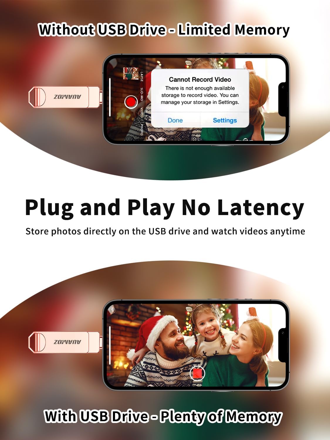 - 【Play Videos, Photos, and Music Directly】Store your favorite media on the flash drive and enjoy seamless playback on your iPhone or iPad, anytime, anywhere, no internet connection needed. It supports a wide range of video and image formats, making it the perfect solution for organizing your digital library.