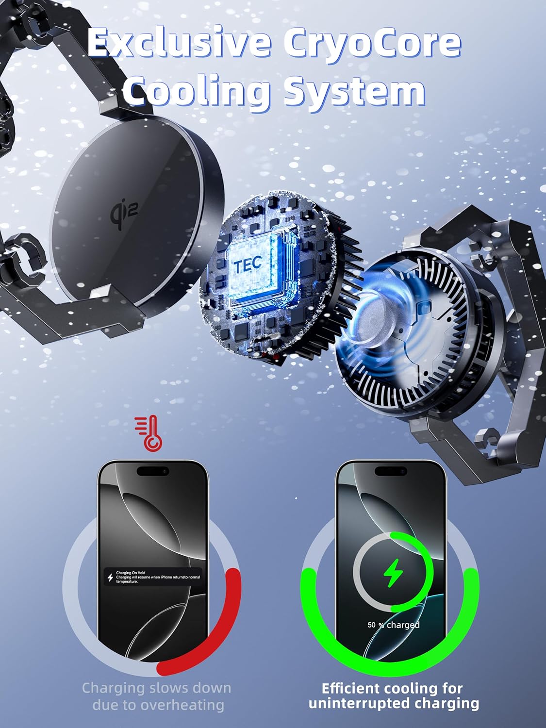 - Advanced CryoCore Cooling: Keep your devices charged at optimal temperatures and maximize the battery lifespan with CryoCore cooling technology, featuring semiconductor heat absorption and an assisted quiet cooling fan for remarkable heat dissipation. Operating at less than 35dB, it’s ideal for peaceful night use, and you can easily control the function with the button.