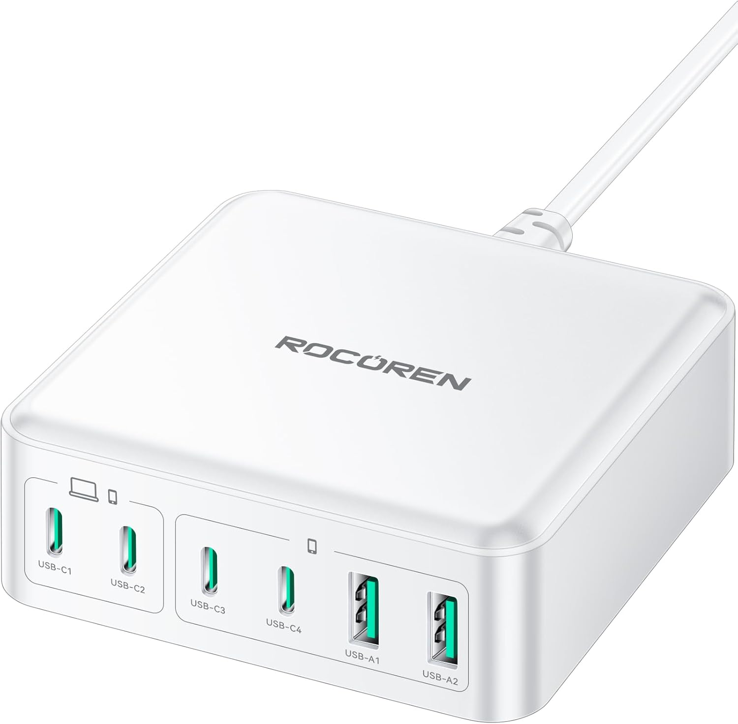 270W USB C Charger Block, Rocoren 6 Port Multi USB-C Charging Station,100W PD Fast USBC Gan Charger Station Hub Dock for Multiple Devices, Laptop Type C for MacBook/iPhone 16/iPad/Galaxy S25