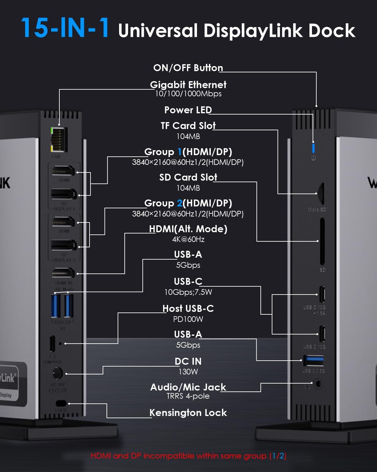 - Wide Compatibility: The Wavlink docking station allows your MacBook to connect to three different displays via the DisplayLink driver, regardless of whether it is an M1/M2/M3/M4 model. Supports Windows 11/10/8.1/8/7/XP/Vista, Mac OS 10.14-14. x and later versions, Chrome OS, Ubuntu, Android, and Harmony OS. *Not compatible with Unix systems, Linux, iOS, and iPad operating systems. Note: The DisplayLink driver must be installed on your device to ensure proper media display functionality.