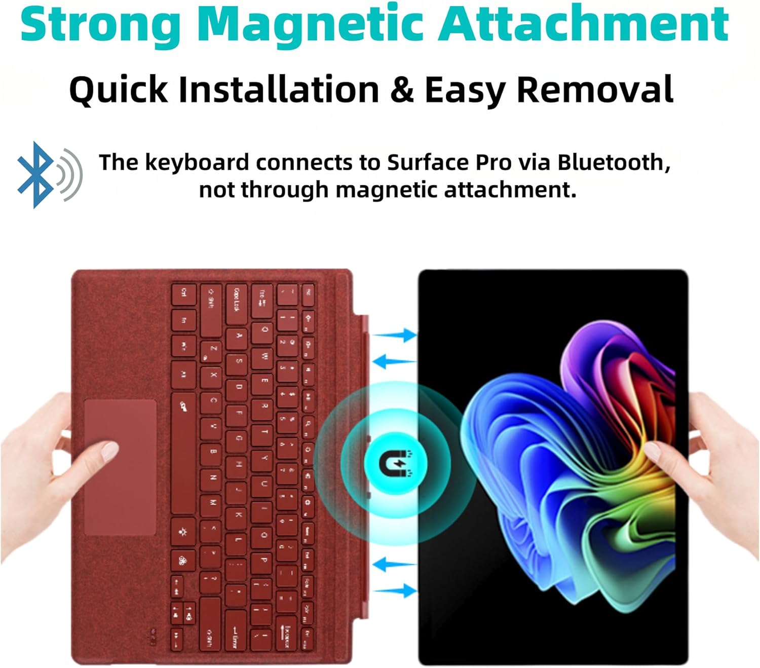 Keyboard for Microsoft Surface Pro Copilot+ (11th Edition) / Pro 11 / Pro 10 / Pro 9 / Pro 8 / Pro X, 13 inch, Detachable Type Cover with Touchpad, 7-Color Backlit & Pen Holder (Poppy Red)