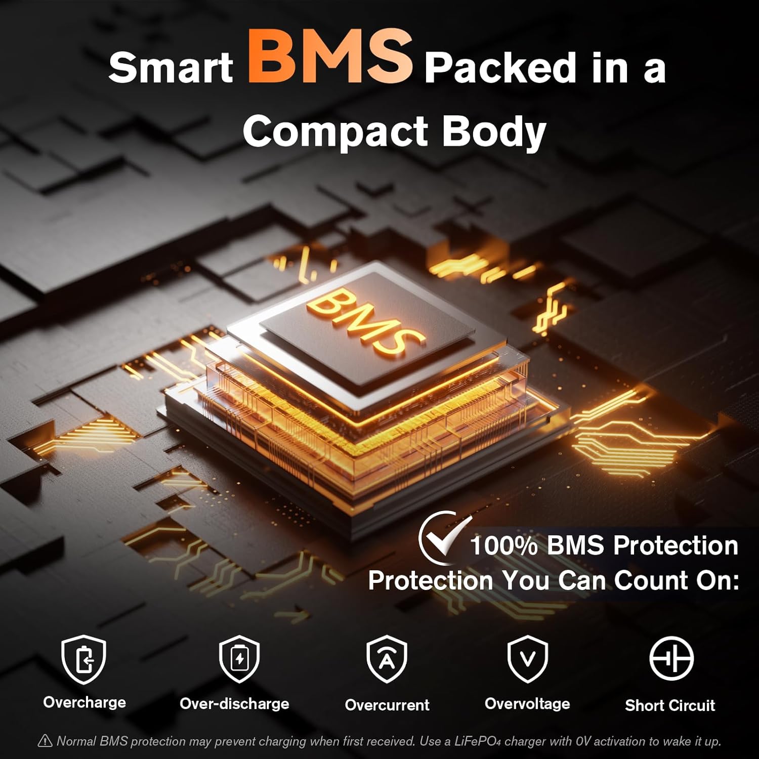 - 【First Use Notice】To protect battery health, some units may ship in 0V protection mode. Use a 14.6V LiFePO4 charger with 0V activation to wake it up before charging. (e.g., 14.6V 8A charger with 0V function)