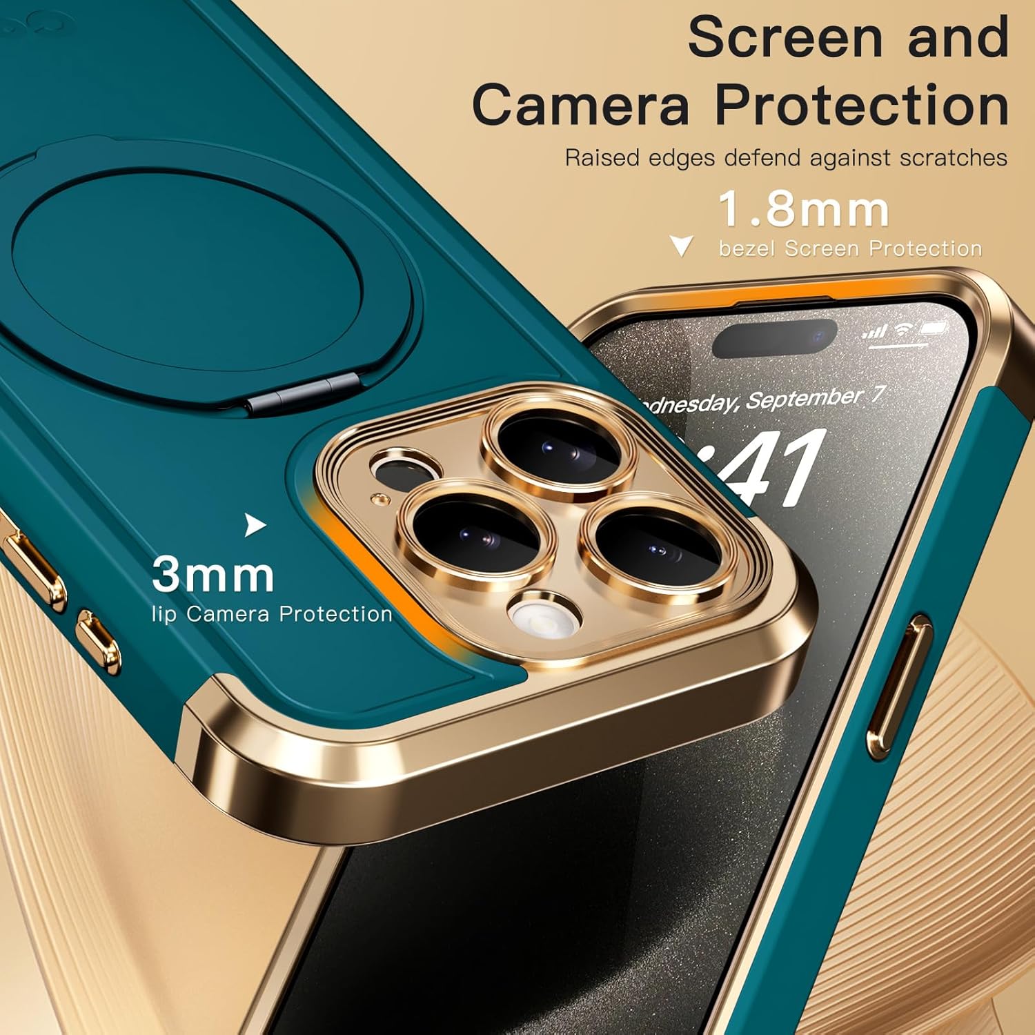 - 【Unique Design】Through vacuum electroplating technology, COOLQO have crafted a polished Noble Gold frame adds a gorgeous aesthetic to your iPhone.Features a flexible TPU frame and a matte coating on the hard PC back to provide you with a premium touch and excellent grip, while the entire matte back coating perfectly blocks smudges, and even scratches, In addition, the embedded kickstand friendly and flush with the back of the case, The back so that slip into pocket easily.