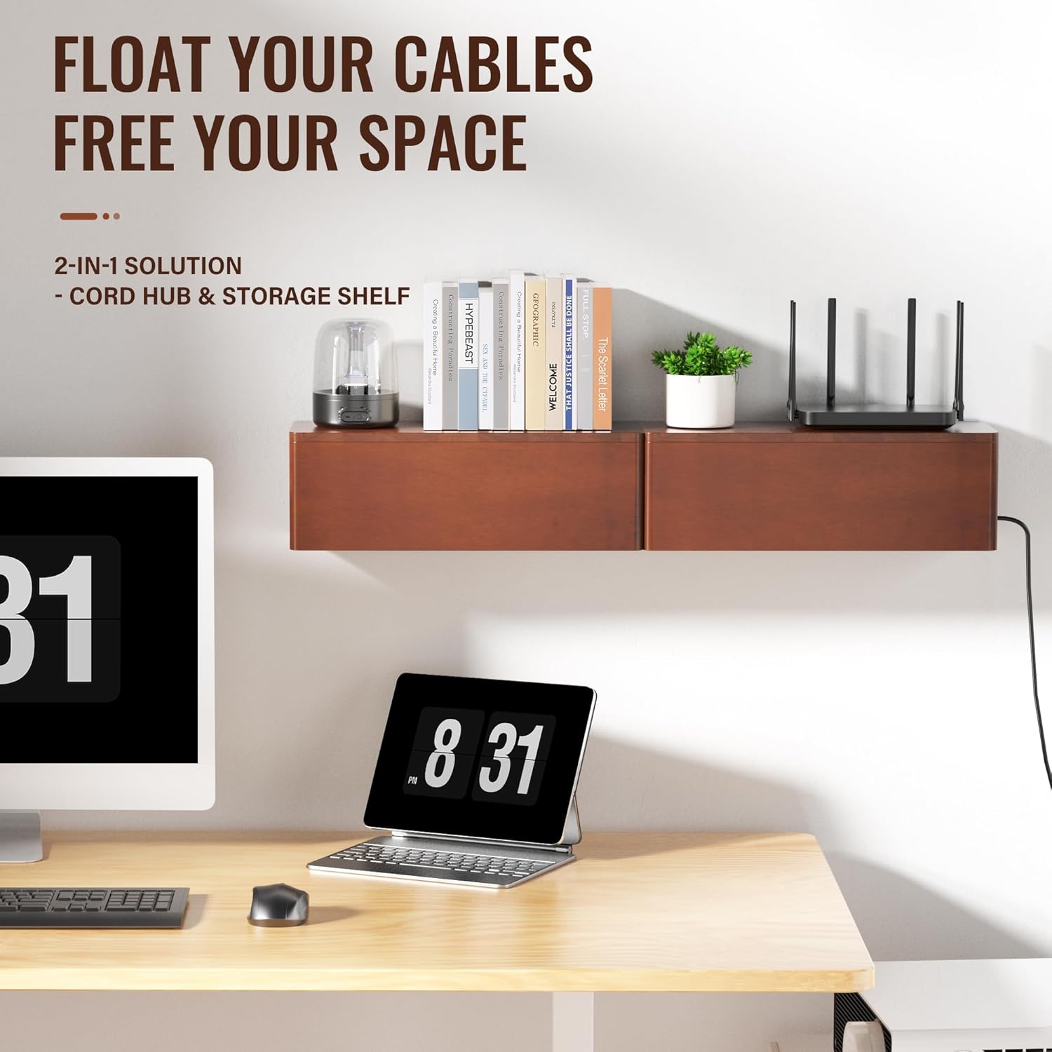 - SOPHISTICATED LIVING: Made from premium rubber wood, our versatile cord management box adapts to your needs—mount it as a floating decor shelf, use it as a desktop cable organizer box, or place it anywhere as minimalist storage. The natural wood grain and simple design elevate your space while discreetly containing essentials, practical and aesthetically pleasing at the same time.