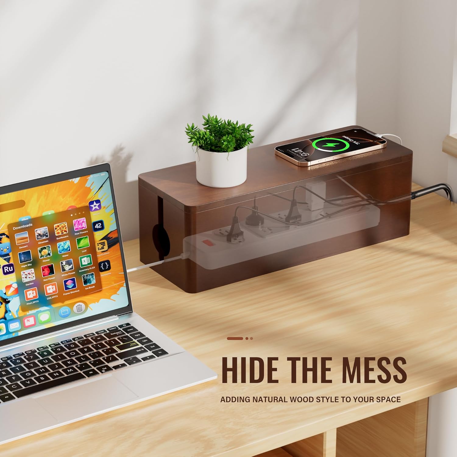 - MAXIMIZE YOUR SPACE: Free up valuable desk/floor space with our wall mounted cord hider box!Simply attach the included heavy-duty mounting hooks to any wall, and effortlessly hang the wooden cable management box.Perfect behind desks, under TVs, or by beds—keeping cords hidden yet accessible for a cleaner, organized space.