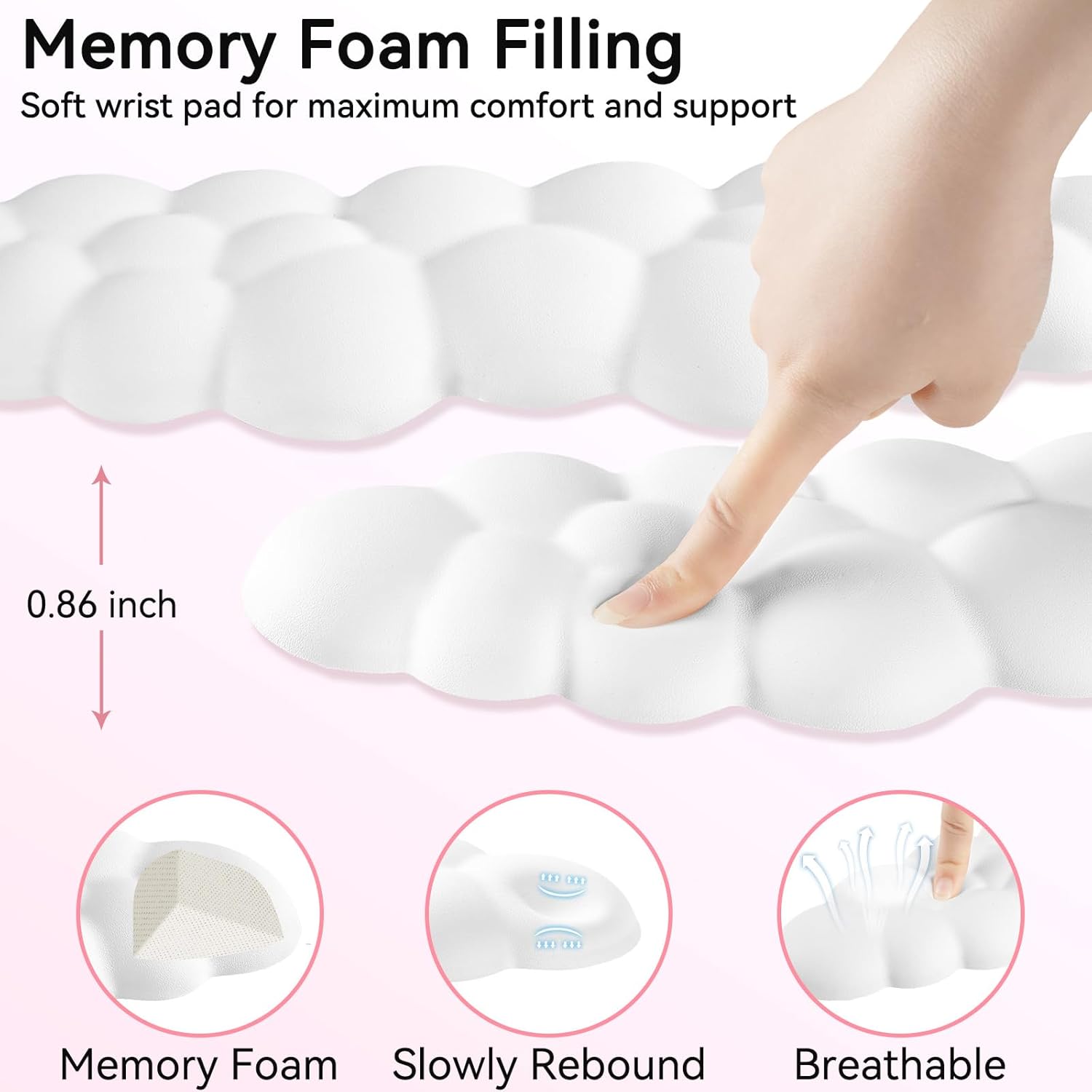 - Ergonomic Cloud Shape & Breathable Texture: This keyboard cushion features a cloud-inspired shape that follows the natural curve of your wrist, guiding it into a more relaxed and aligned position while reducing pressure points. As a cloud hand rest, its concave-convex surface enhances airflow to reduce stuffiness and boost comfort