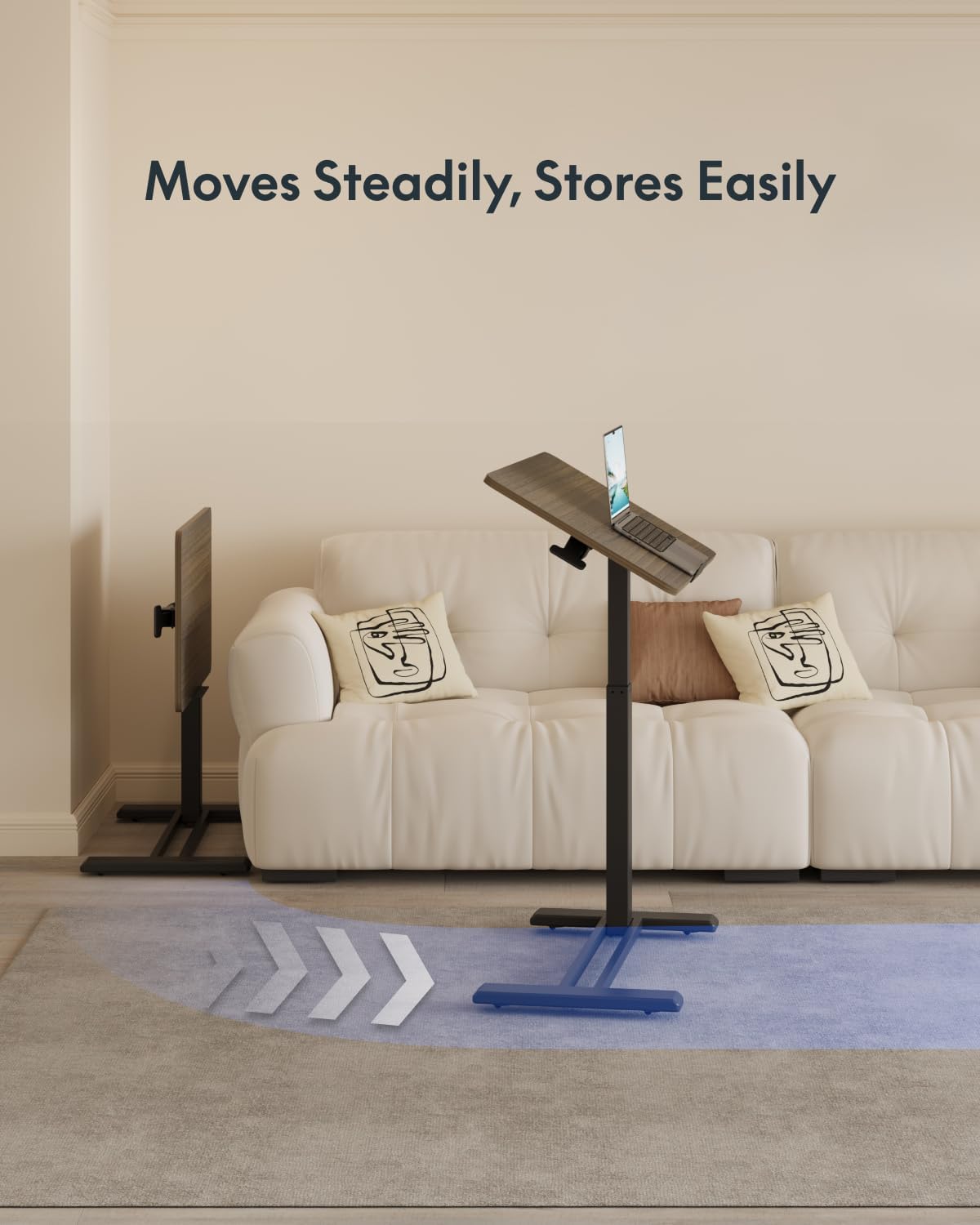 - Easy Mobility and Space-Saving Design:Equipped with 4 hidden casters, this Portable Desk and Rolling Desk Adjustable Height glides effortlessly anywhere. Its low-profile base tucks under furniture (minimum 1.2" high), serving as a compact small desk that maximizes space in homes, offices, or as an overbed bedside table.