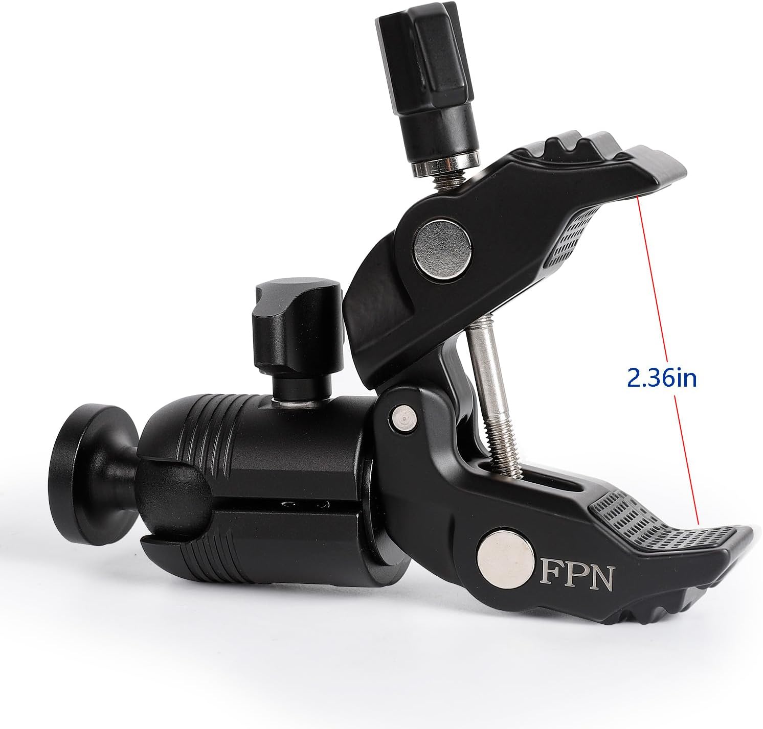 - Sturdy and durable: Crafted from durable aluminum alloy with an anodized finish, this super clamp camera mount withstands tough environments. Features a 1" rubber-coated ball for a secure, non-slip grip. Built-in rubber pads protect your equipment's finish from scratches and ensure a rock-solid, vibration-resistant hold.