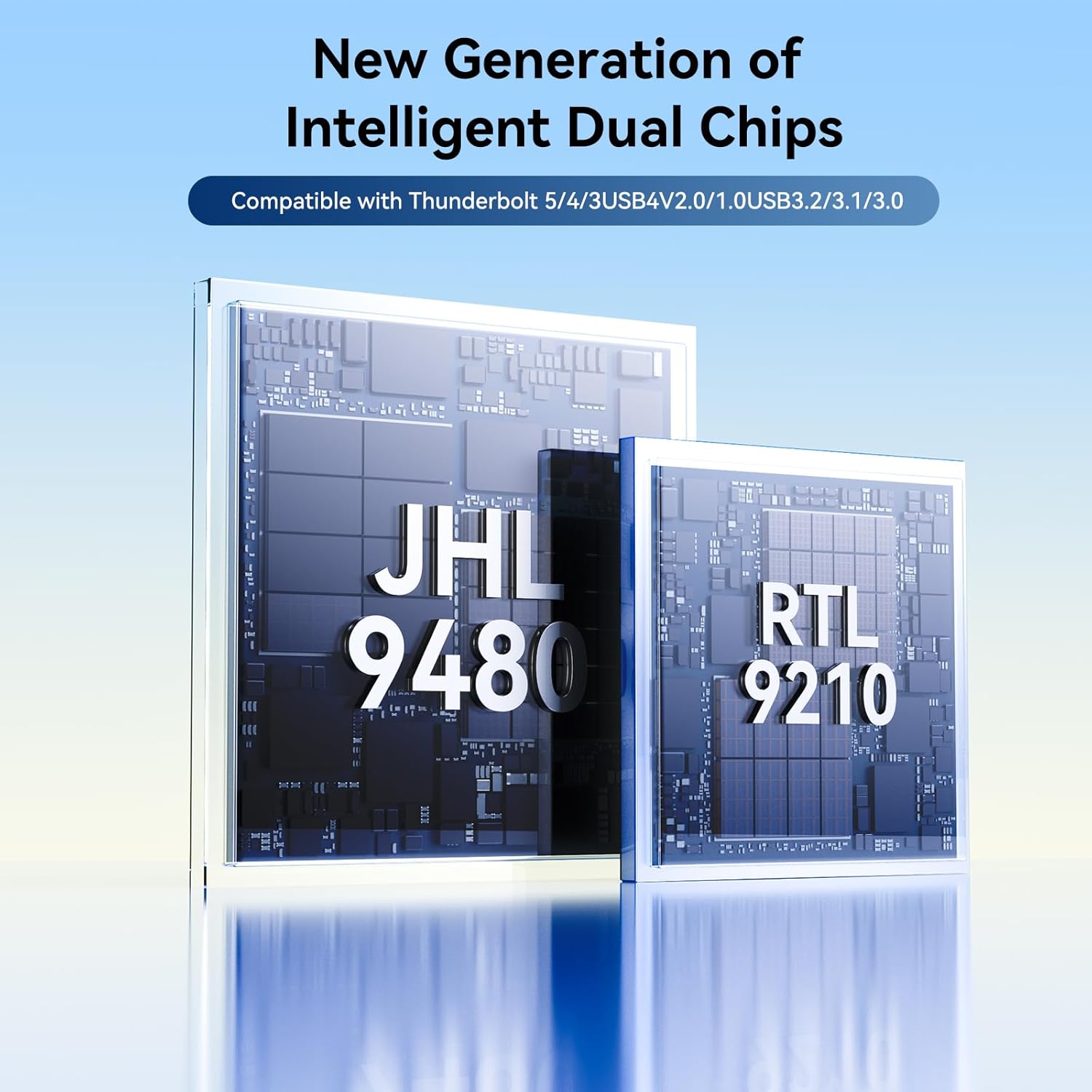 - 【Ultra-fast 80Gbps Transfer Speed】ANYOYO 80Gbps M.2 NVMe SSD Enclosure uses Next-Generation Chip JHL9480, which is excellent and stable, providing up to 80Gbps bandwidth, transferring 6G files in 1 second, and the actual theoretical test is up to 6000MB/s, which is not only fast but also stable (Note: To achieve speeds over 3000MB/s, use an SSD with PCIe 4.0 x4 and NVMe 1.4 or higher, and avoid using M.2 PCIe 5.0).