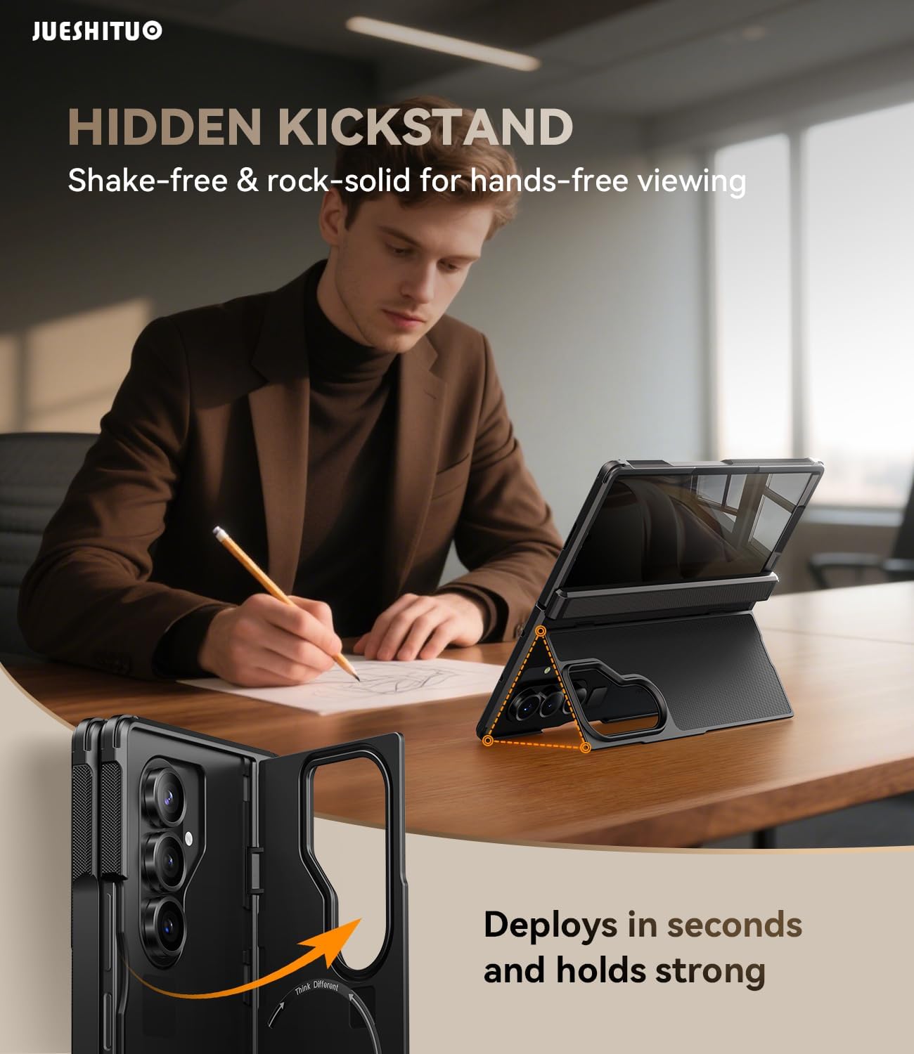 JUESHITUO for Samsung Galaxy Z Fold 7 Case with Privacy Screen Protector, Hidden Kickstand & MagSafe, Military Shockproof Cover for Galaxy Z Fold 7, Hinge Protection, Black
