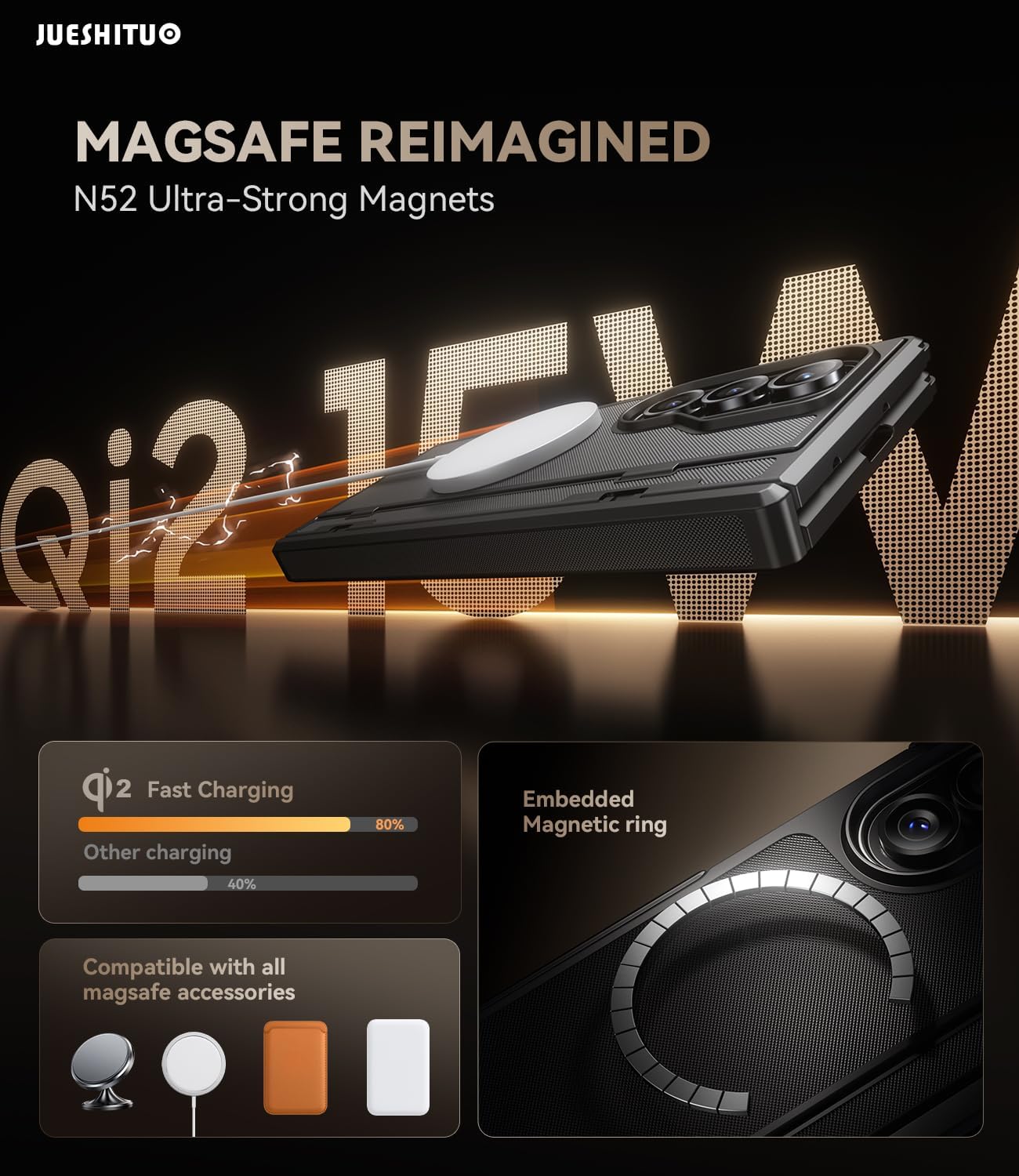 - Compatible with MagSafe: The samsung z fold 7 case supports seamless magnetic attachment to MagSafe chargers and accessories. Maintains ultra-thin profile, wireless charging, and precise button access. Note: Not compatible with non-magnetic clip-style car mounts