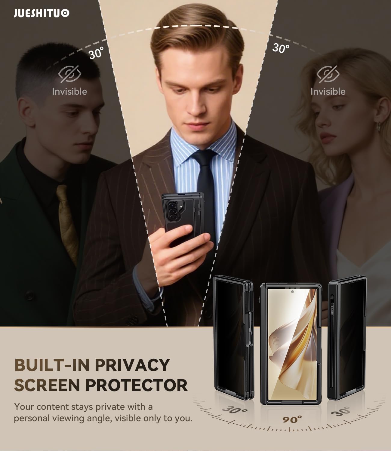 - Privacy Screen Protector: The samsung fold 7 case features an upgraded anti-spy tempered glass. Protects your screen from scratches and prying eyes while maintaining high touch sensitivity. Enjoy privacy without sacrificing usability