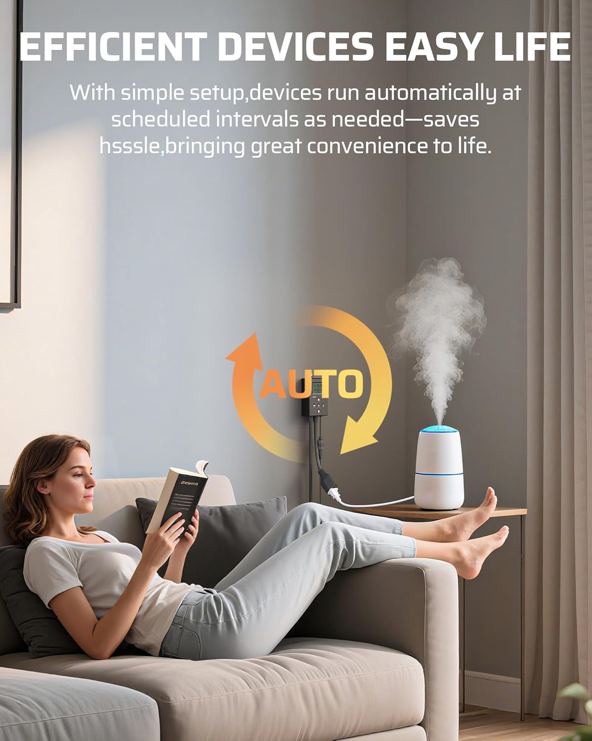 - [Energy-Saving & Cost-Effective] By powering devices only when needed, this outlet timer indoor helps cut electricity bills and extend appliance lifespan; the interval timer outlet is perfect for avoiding unnecessary energy waste at night or during idle periods