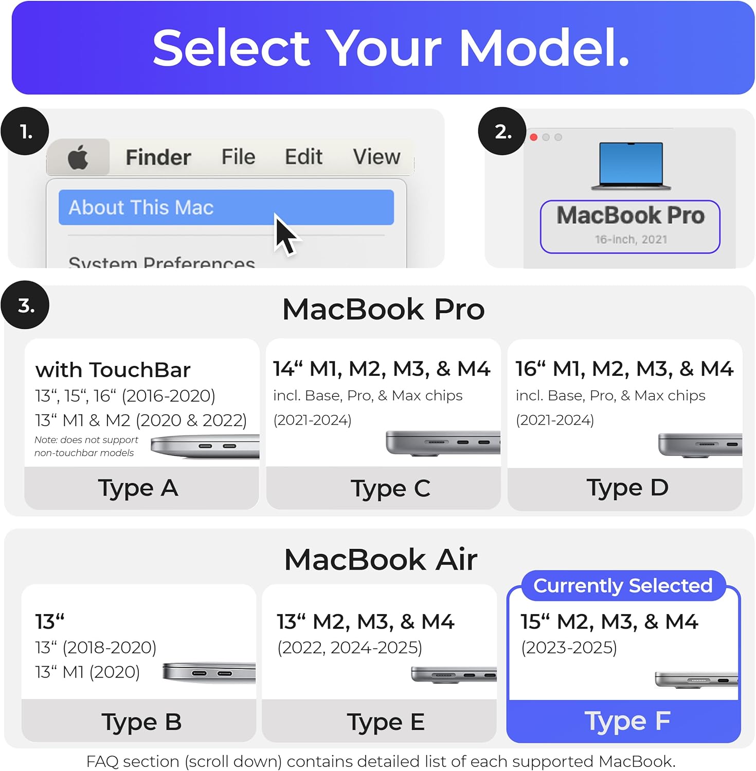- MODEL COMPATIBILITY: The variant you are viewing is designed exclusively for MacBook Air 15" (2023 & after). This variant is NOT compatible with all MacBook Pro models, older MacBook Air models (2018-2020), and all MacBook Air 13" (2022 & after). Select other variations which support those models.