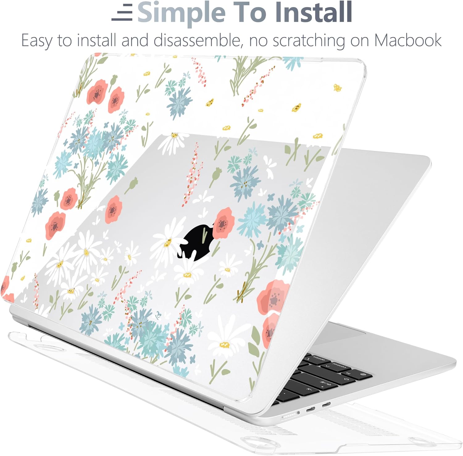 Batianda Premium Case for New MacBook Air 15 inch 2025 2024 2023 with M4 M3 M2 Chip, Floral Designed Protective Plastic Hardshell & Keyboard Cover & Screen Protector, Cute White Flower
