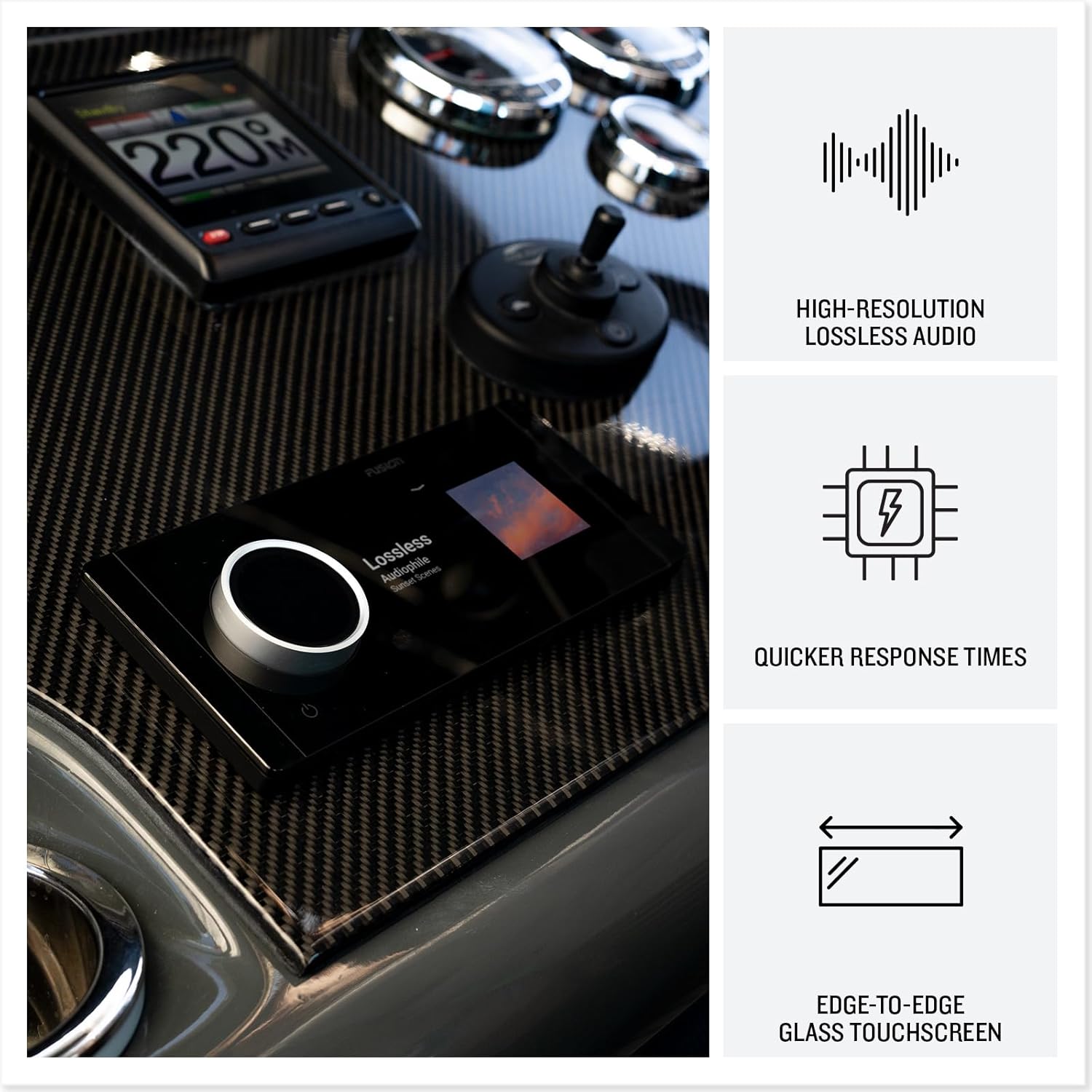 - Built on the True-Marine design philosophy from Fusion, the unit’s IPX6- and IPX7-rated water-resistant front face has been tested to a high level of protection against salt fog, temperature, vibration and UV exposure