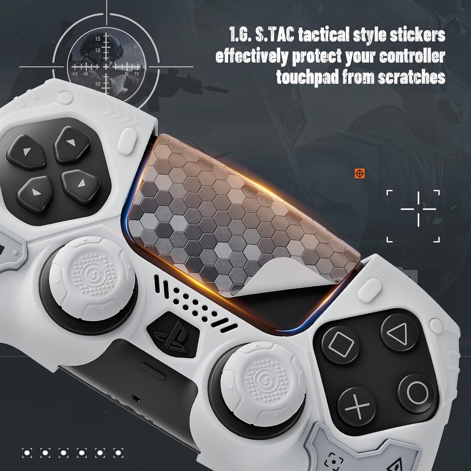 - What You Get: Silicone controller cover*1, joystick cap *2, touchpad sticker *2, modified sticker * 1, wet wipe *1, dust cloth *1. A nice customized packaging is perfect gift for your lover or boyfriend. Gear up with G.S.TAC and go forth with strength and style