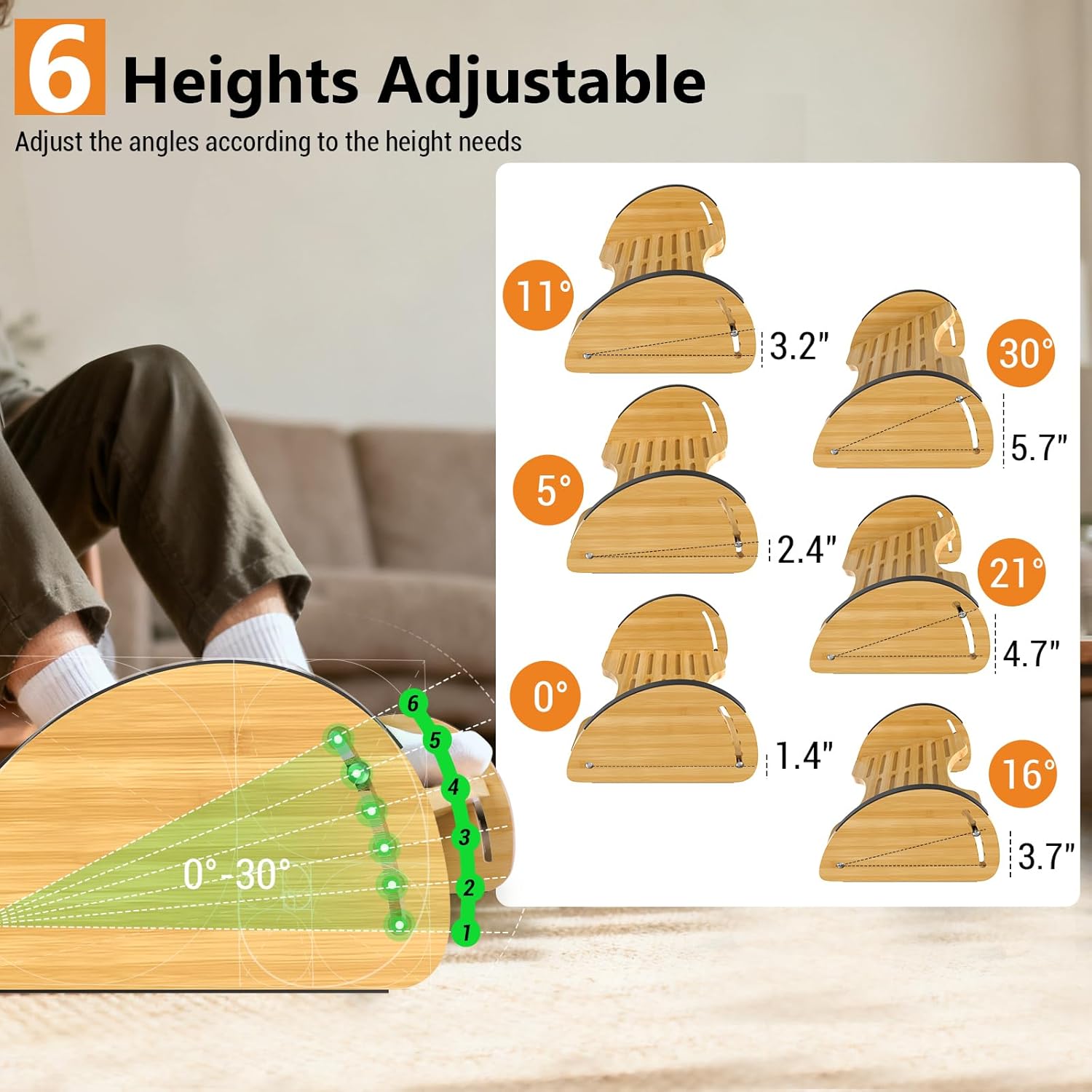 Bamboo Foot Rest for Under Desk at Work - Reversible Rocking Desk Footrest 2-in-1 with 6 Adjustable Heights, Ergonomic Foot Rest Under Desk with Anti-Slip Surface for Home, Office and Gaming