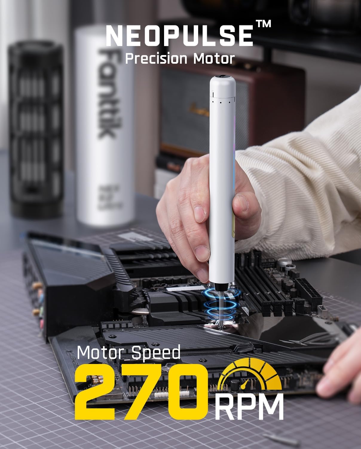 - Powerful Torque, Precise Control: With up to 0.6N.m torque and a 270RPM NeoPulse motor, the Fanttik E2 Ultra makes precision repairs effortless. 5 gears torque adjustment (0.05/0.1/0.2/0.4/0.6N.m) ensures quick and precise assembly without damaging delicate devices. Perfect for tablets, phones, watches, laptops, and small appliances.