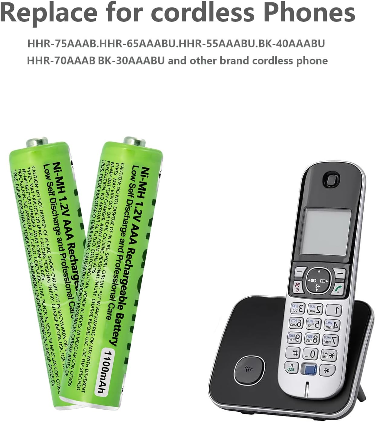 - 【Product content】:A box of NiMH AAA rechargeable batteries 1.2V, 8 sections.Widely used , such as All electronic products that use AAA batteries, for Panasonic/Motorola cordless phones, compatible replacement for Panasonic battery models: HHR-55AAABU /HHR-65AAABU/HHR-70AAAB/HHR-4DPA/HHR-75AAAB/BK-40AAABU/BK-30AAABU.