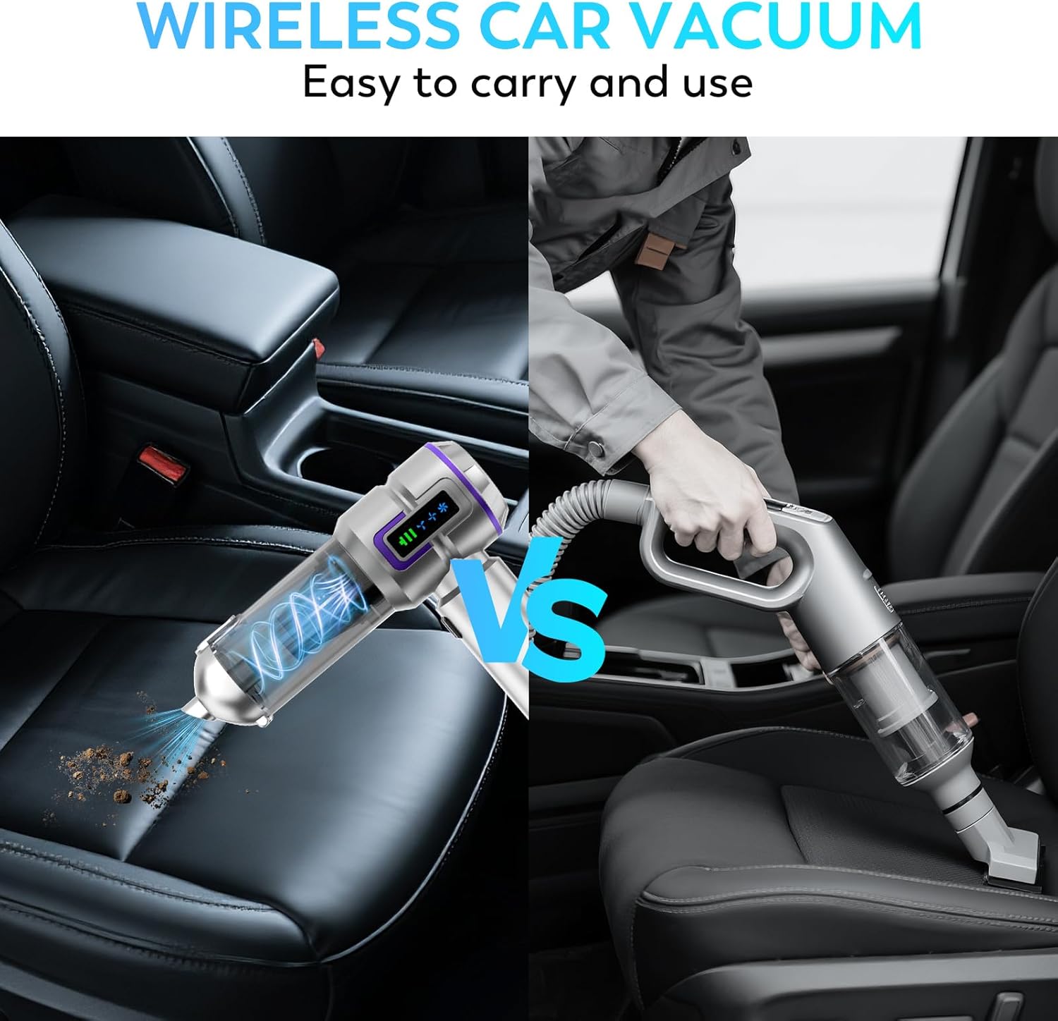 - 【Freedom & Convenience】Car vacuum cleaner cordless design frees you from the hassle of cords, allowing you to move freely in your car or home. Its lightweight construction makes it easy to use even in tight spaces, eliminating the frustration of bulky cleaning equipment and bringing convenience to your daily cleaning routine