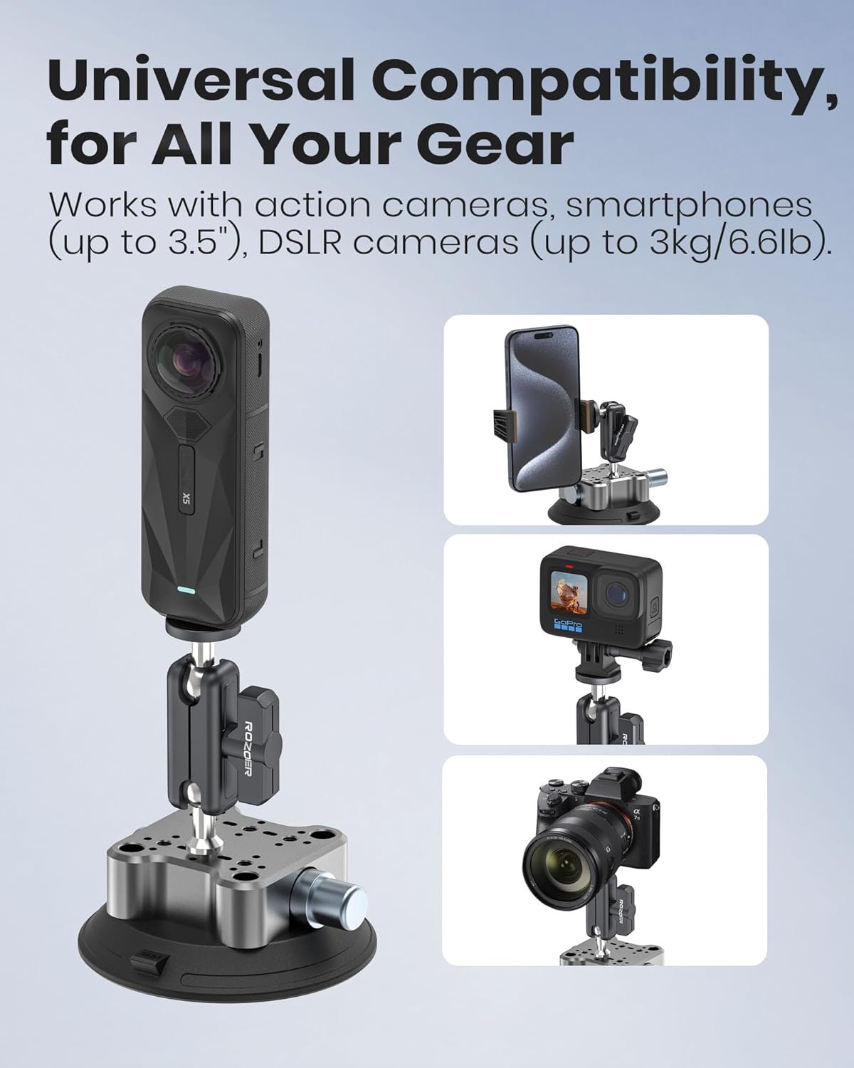 - 【Universal Device Compatibility】Holds: DSLR/SLR cameras (up to 3kg), smartphones (with clip), for Hero 11/10/9, for Insta360, for DJI Osmo Action Cameras. Includes 1/4" screw mount.