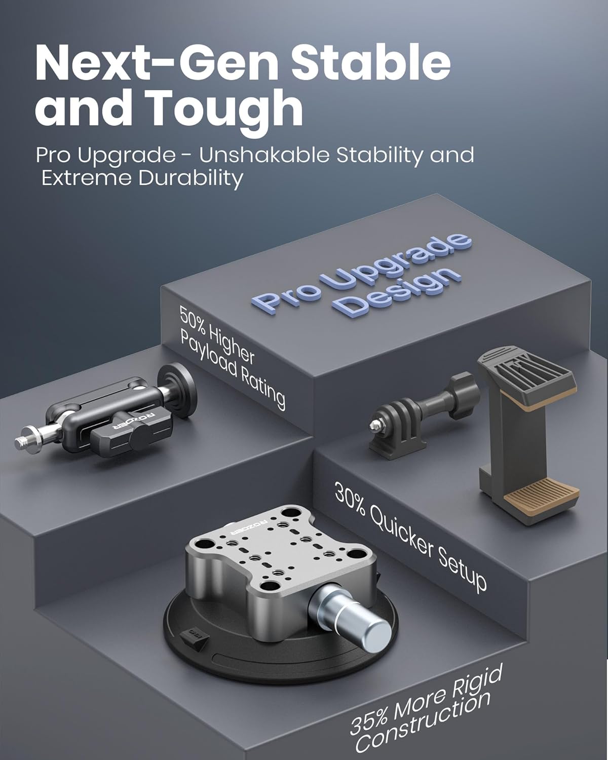 - 【Industrial-grade Stability】The all-aluminum vacuum chamber locks 360° stability with pump action. No wobbles, no slips. Keep your camera safe through potholes and sharp turns.
