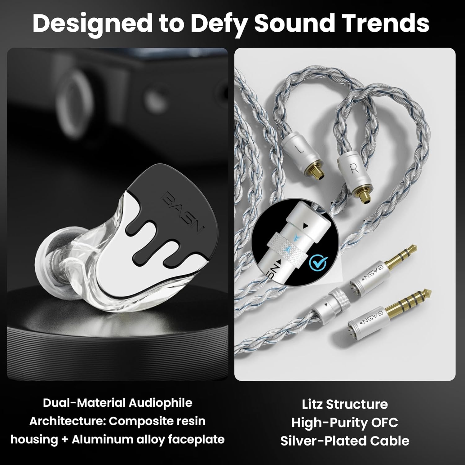 - 【Pro Stage Monitor Earphones】basn bmasterX built for musicians with resin housing and aluminum plate in an ergonomic design and 7 fit-tips for all-day comfort. Professional IEMs with lightweight construction prevents fatigue while delivering pro audio quality