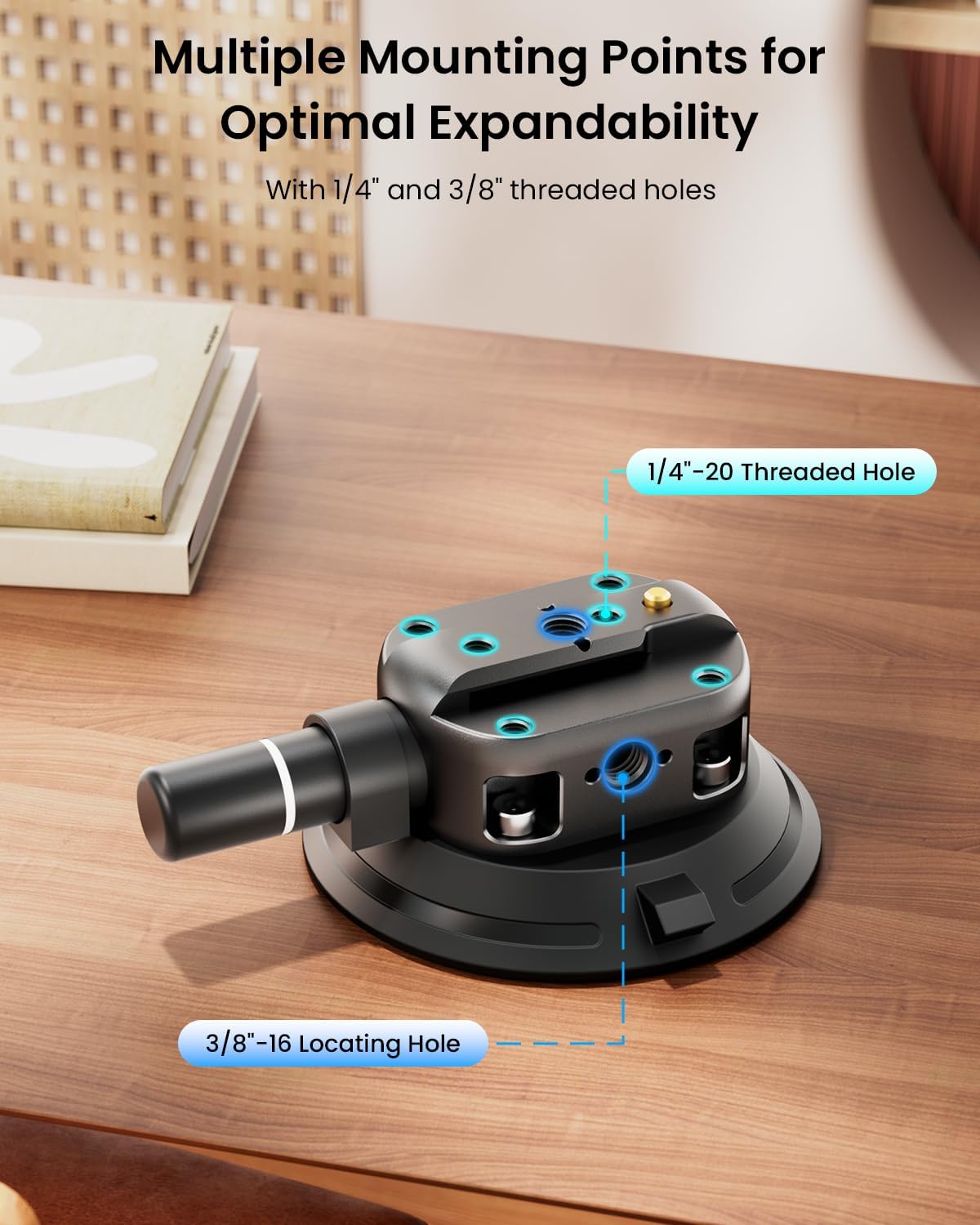 - 360° Precision with Dual Ball Joints:Equipped with dual ball joints and magic arm, our suction phone mount provides unrestricted 360° angle adjustment, with 1/4" & 3/8" Mounting Holes for ARRI,empowering you to capture every moment from any perspective. For this 360 camera car mount, whether you’re filming a scenic drive from a low angle, recording a vlog at eye level, or shooting an overhead time-lapse, simply twist and lock the joints to achieve the perfect position. For go pro suction cup mounts, the smooth, seamless adjustment allows for quick transitions between different shooting scenarios, making it ideal for dynamic adventures.
