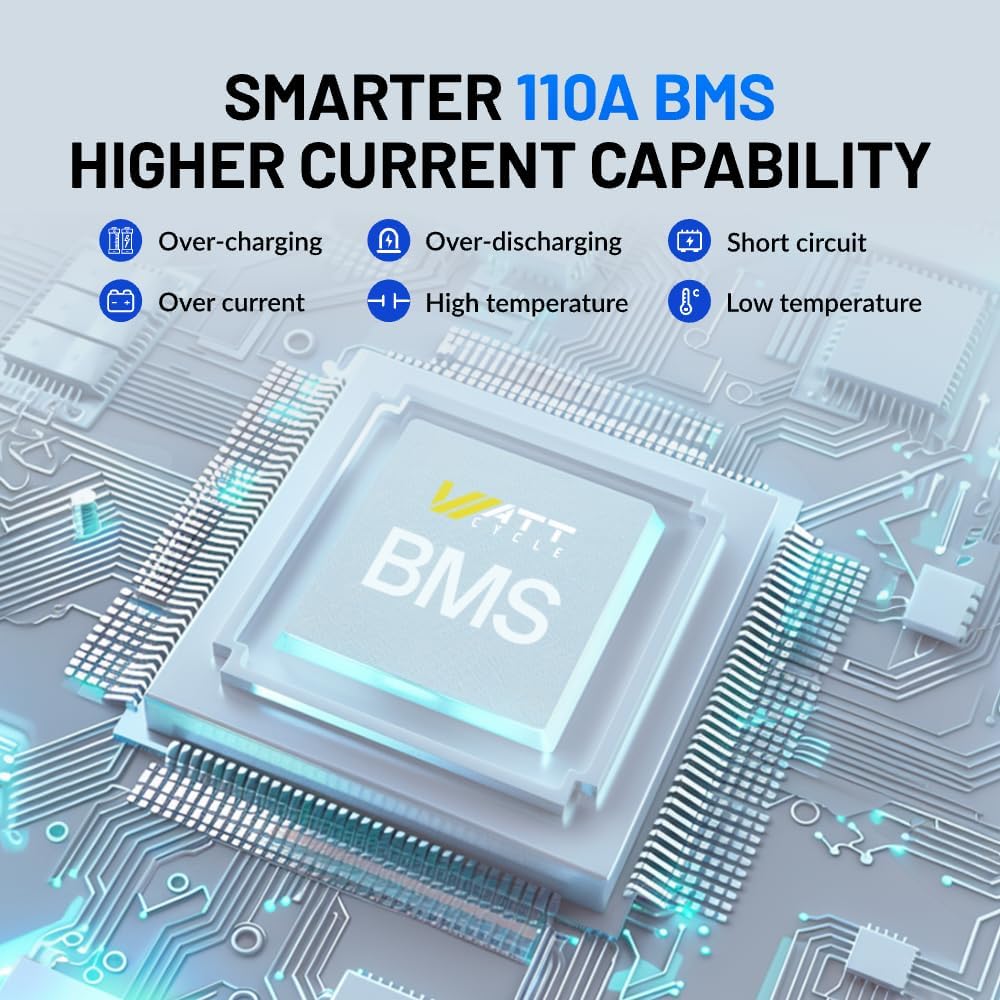 - High-Capacity Deep Cycle Power: The WattCycle 100Ah LiFePO4 Battery delivers outstanding power with over 15000+ deep cycles, ensuring a lifespan of up to 10 years. Ideal for long-term use in RVs, golf carts, boats, and off-grid home energy storage systems.