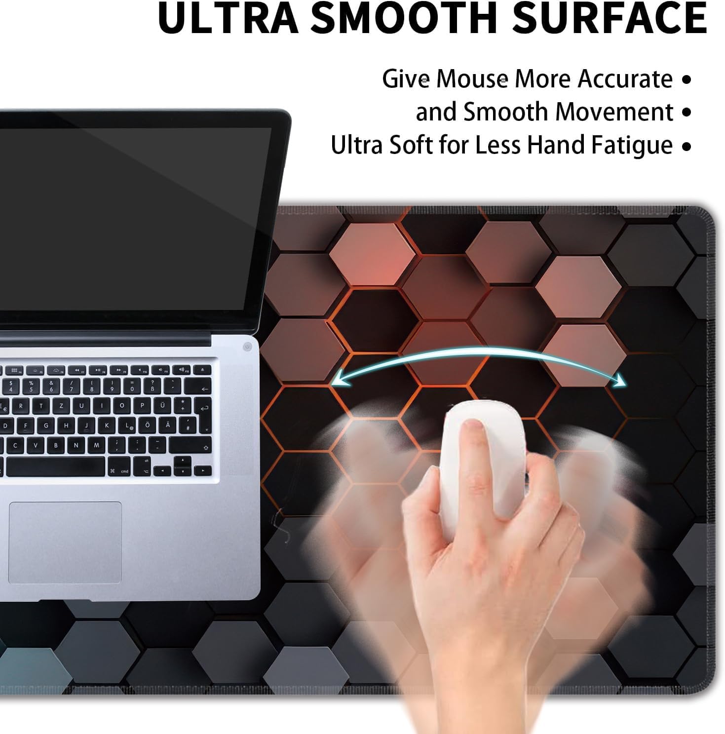 Hexagon Honeycomb Large Mouse Pad,Gaming Keyboard Desk Pad,Extended Mouse Mat Non-Slip Rubber Base with Stitched Edges for Office Game Home XXL 35.4"x15.7"