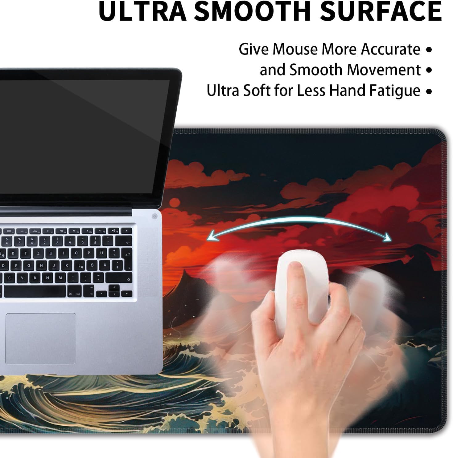 Japanese Sea Wave Large Mouse Pad,Gaming Keyboard Desk Pad,Extended Mouse Mat Non-Slip Rubber Base with Stitched Edges for Office Game Home XL 31.5"x11.8"