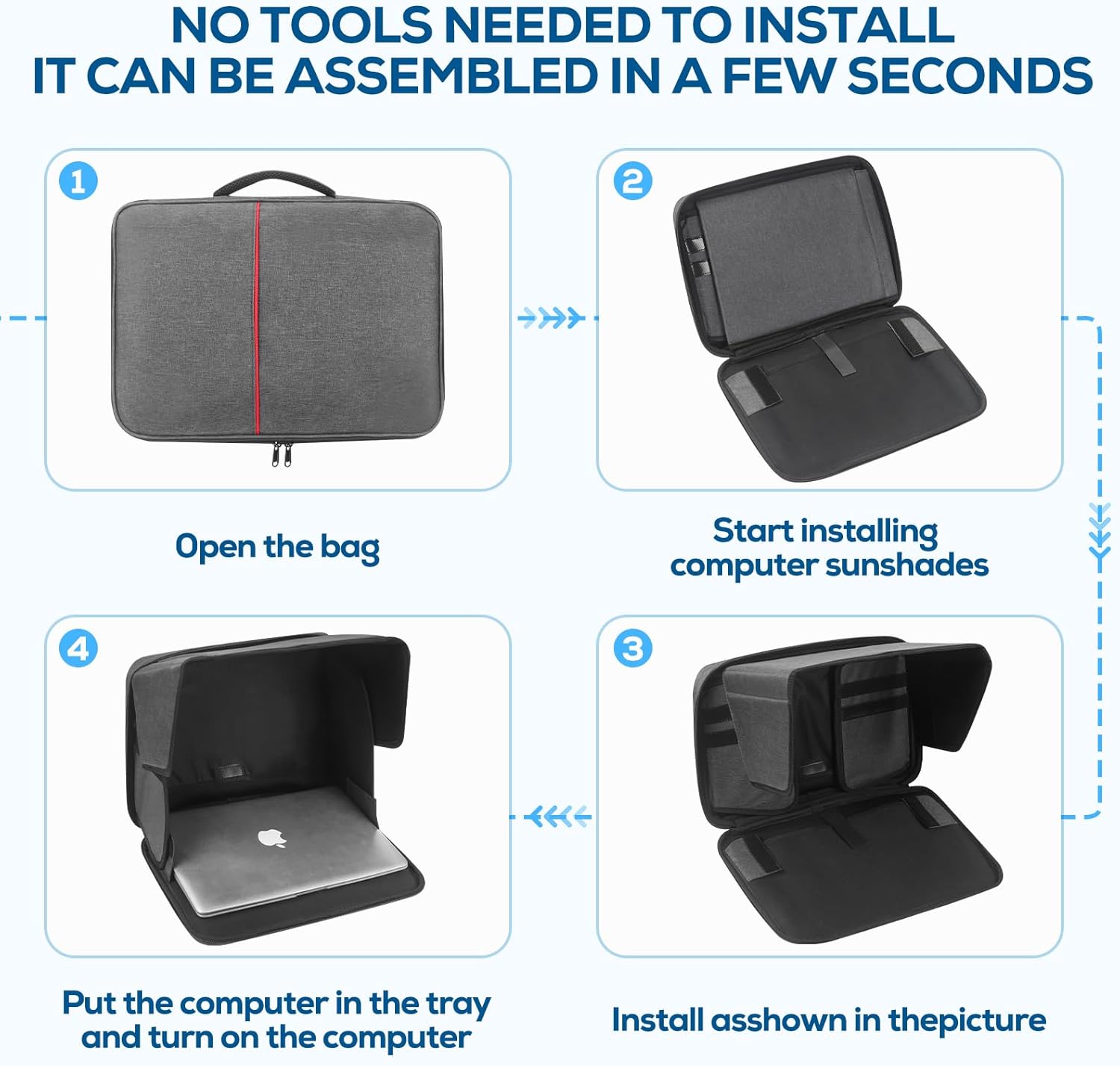 - 1.Advanced Glare & Heat Filtration: Crafted with premium light-blocking fabric, this physical "screen filter" acts as a sun shade to dissipate heat, preventing laptop overheating and enhancing visibility in bright outdoor environments.