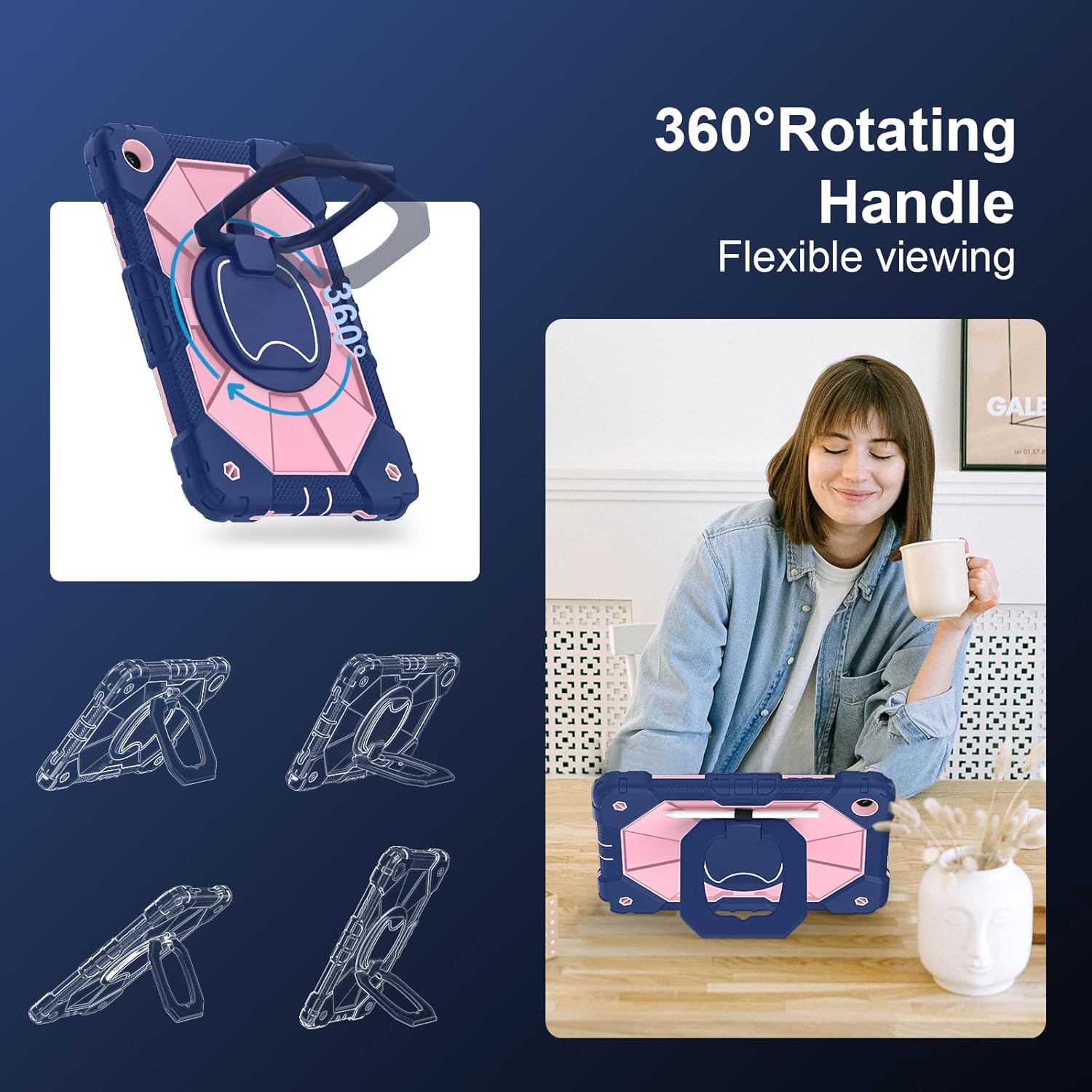 for Galaxy Tab A9 Plus Case 11 Inch, Rugged Case for Samsung Galaxy A9+ Tablet with Screen Protector 360 Rotating Stand Shoulder Strap Pen Holder, 2023 Model(SM-X210/X216/218), Navy Rose