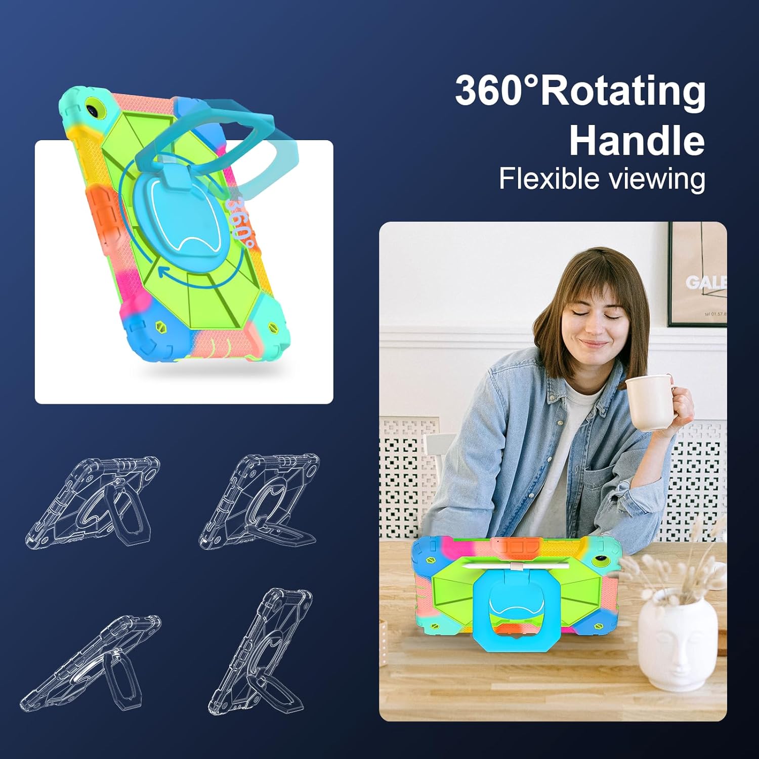 for Galaxy Tab A9 Plus Case 11 Inch, Rugged Case for Samsung Galaxy A9+ Tablet with Screen Protector 360 Rotating Stand Shoulder Strap Pen Holder, 2023 Model(SM-X210/X216/218), Rainbow Green