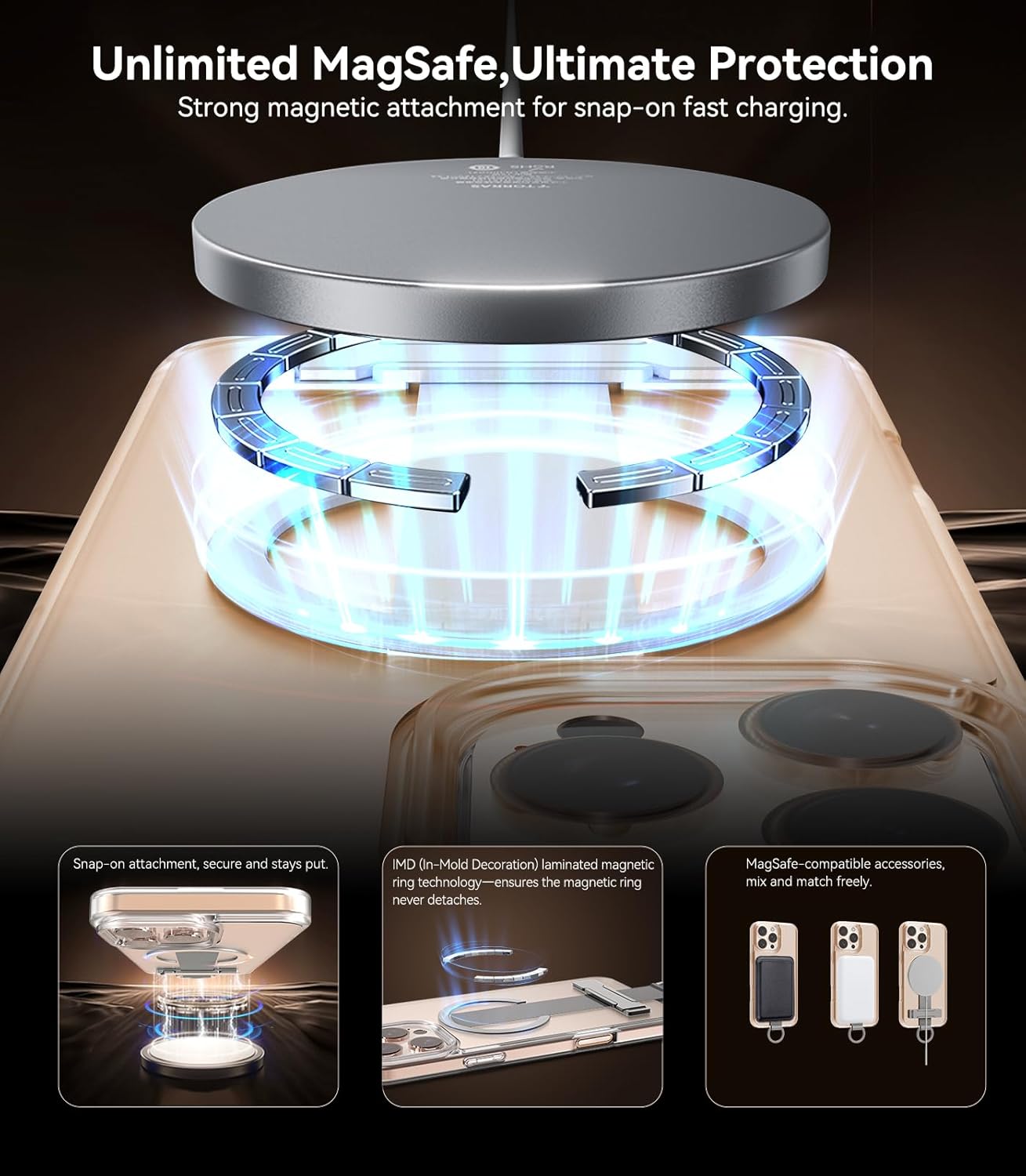 - 【 Military-Grade Magnetic Ring】 Features 16 powerful N52 neodymium magnets for strong compatibility (not Apple-certified) Maintains perfect alignment with chargers and accessories without signal interference