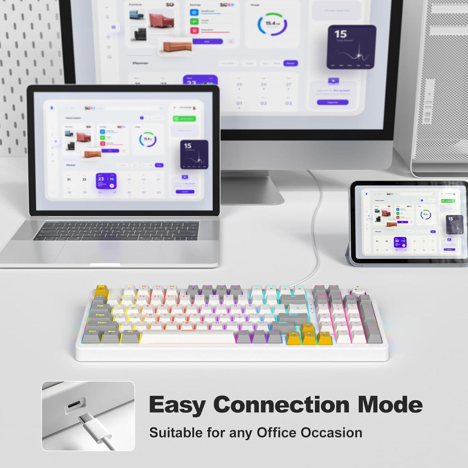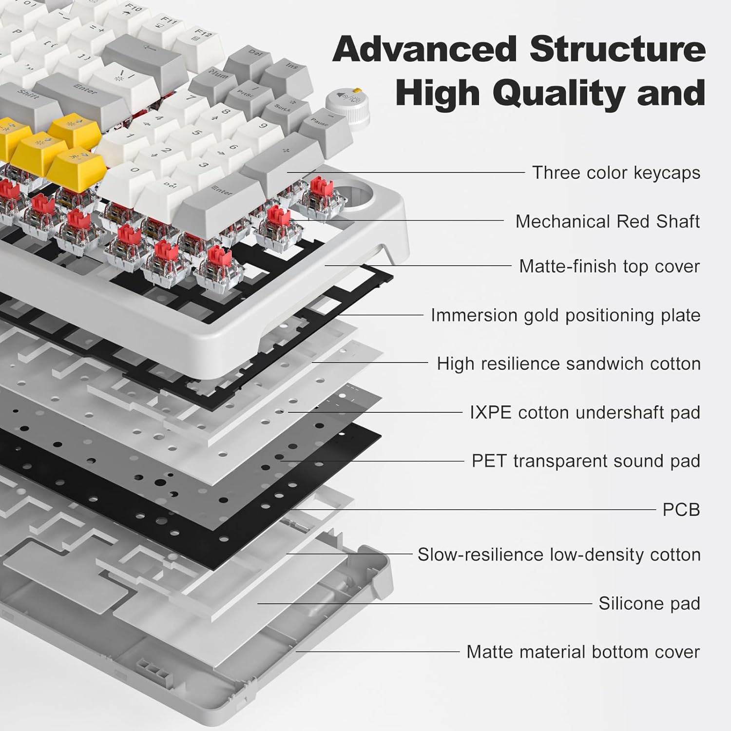 - Compact 96% Layout AK96 Mechanical Keyboard: PBT keycaps resist fading, retain arrow keys & numpad for work/gaming versatility.