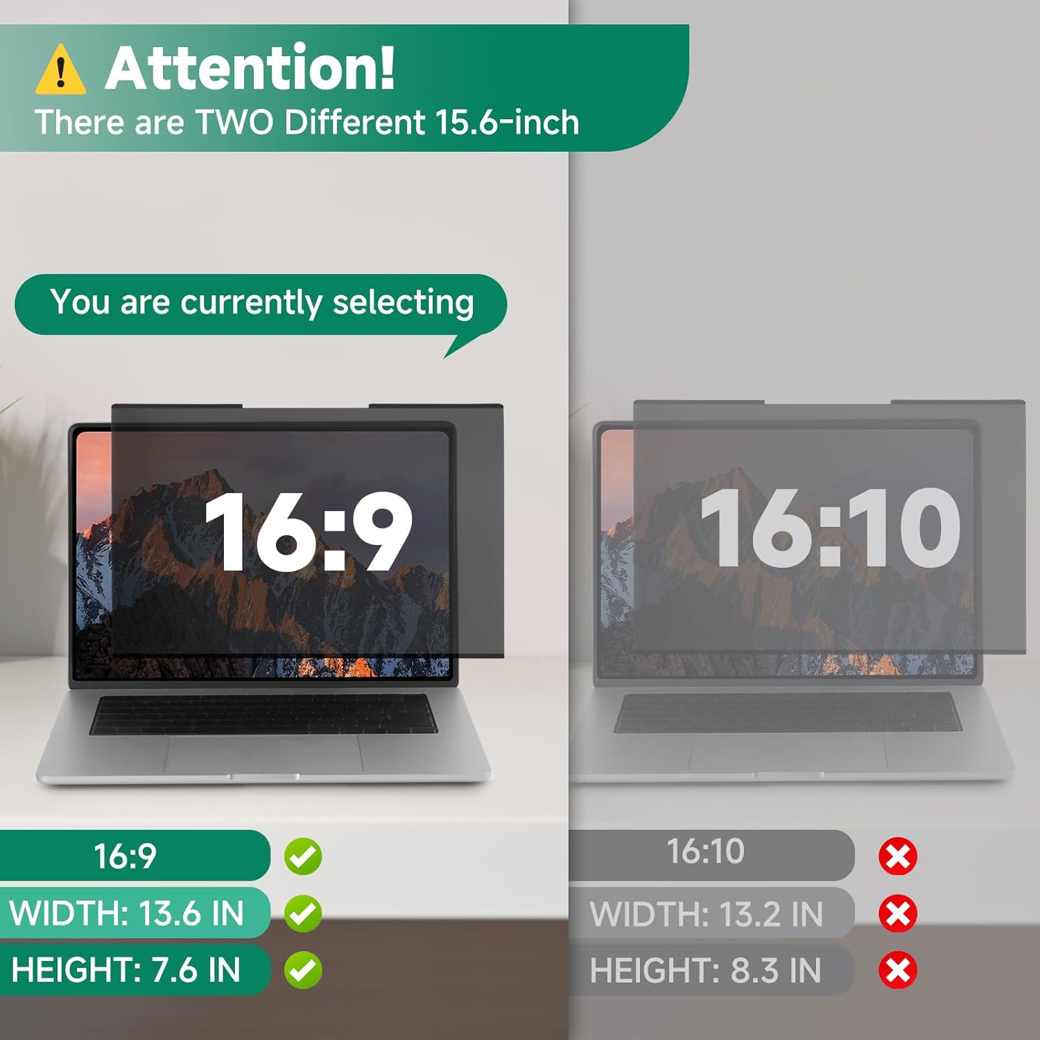 - Wide Compatibility - IRUYO FL privacy screen protector is espeaiclly designed for laptop 15.6 inch(16:9), 13.6''W and 7.6'H viewable area, please measure your screen firsr before purchase. Compatible with Lenovo, HP, Dell, Acer, Asus, Samsung, and other laptop brands.