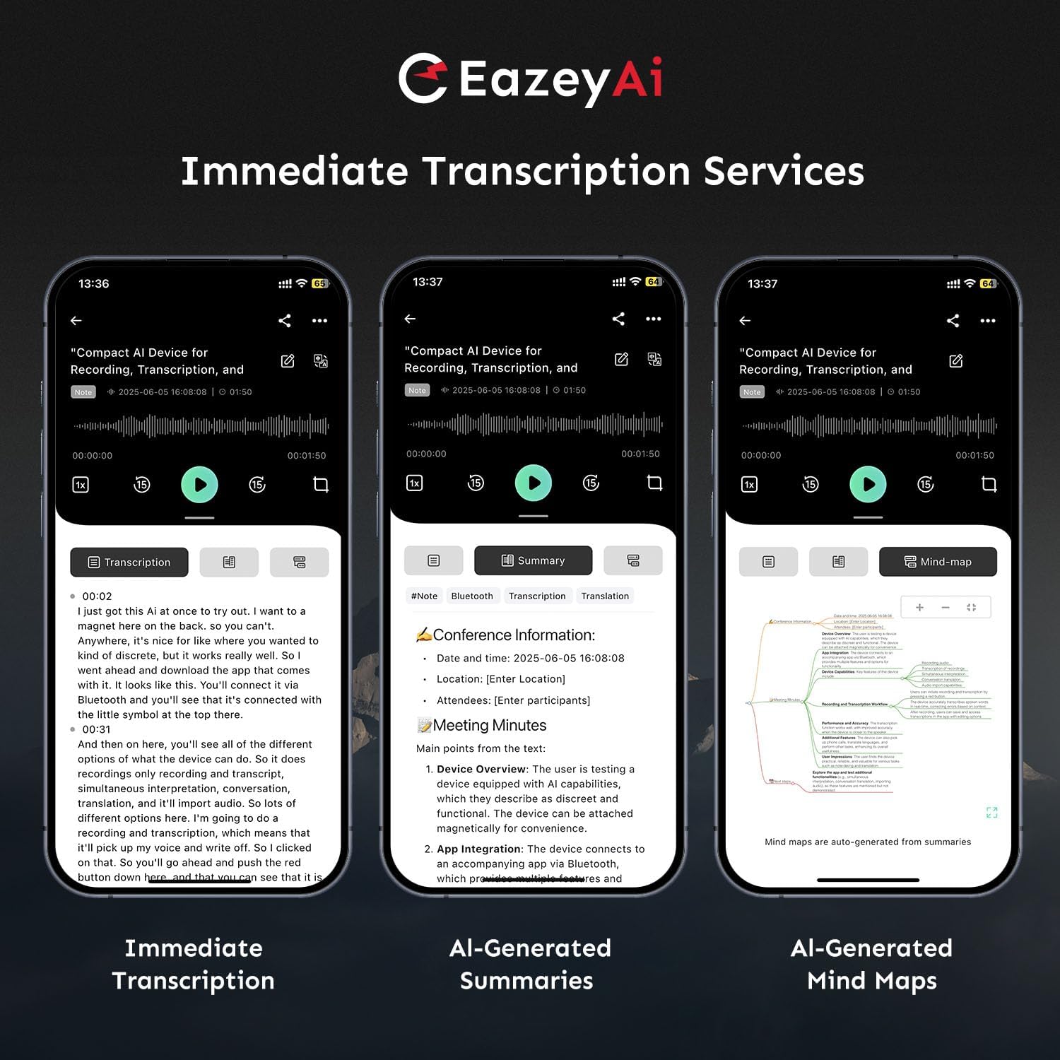 - Tiny and Easy to Use: The ai note taking device comes with text conversion function, compact and lightweight (2.16* 3.35* 0.117 inches, 0.11 pounds), and the magnetic case design allows it to be firmly attached to the phone during calls, making it easy to carry. One click start recording, pause/resume recording at any time. The AI DVR Link APP interface is intuitive and easy to use, allowing users to quickly get started