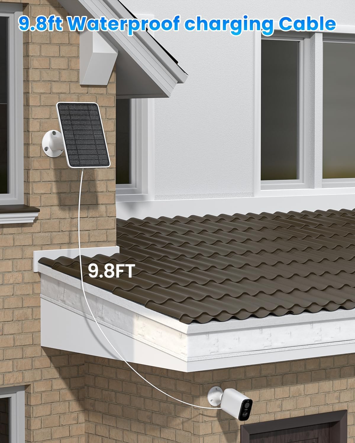 - 【Package Included】The solar panel kits are made of high-quality and environmentally friendly materials, including 4 solar panel with 9.8ft cable with USB-C plug, 4*USB-C to DC plug adapter, 4*USB-C to Micro-USB adapter, 4*360° adjustable mounting bracket, 4*screw bag, 160*cable tie, 1*screwdrive. Please note that the charging efficiency depends on the intensity of the sun's rays and the speed at which the outdoor cameras consume power. If you have any questions, feel free to contact us, your satisfaction is always our aim.